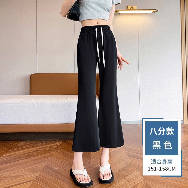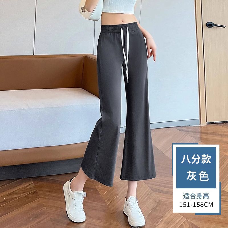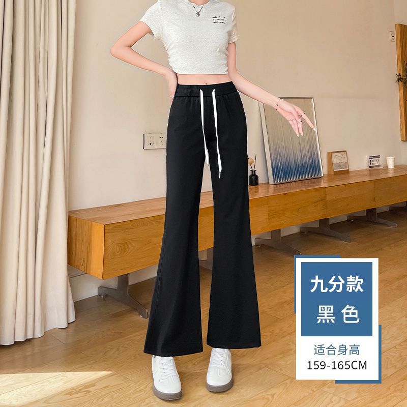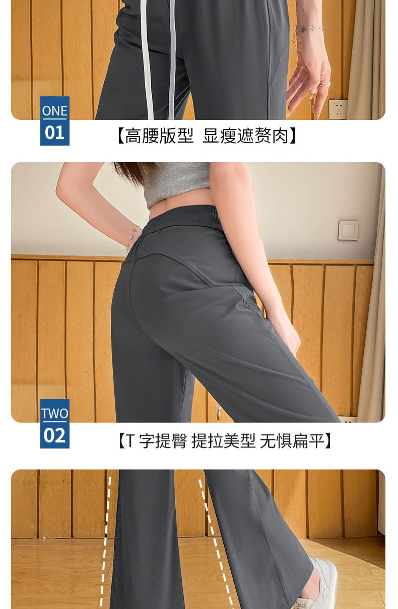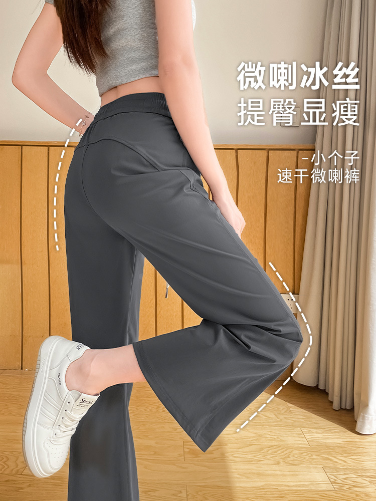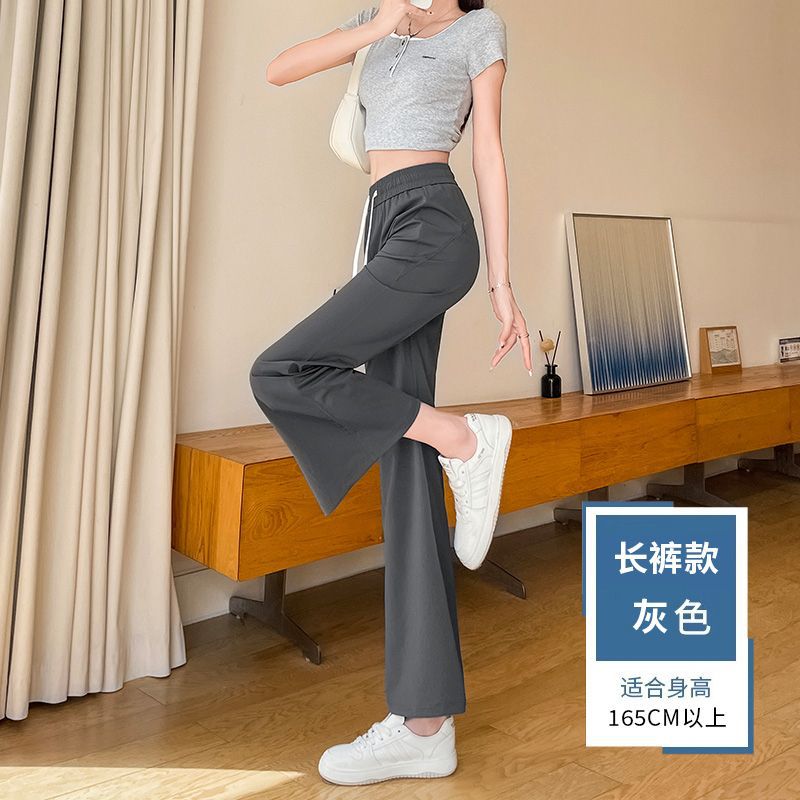 Летние тонкие утягивающие прямые быстросохнущие брюки, расклешенные брюки из ледяного шелка, женские универсальные повседневные спортивные брюки