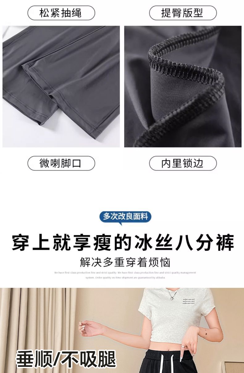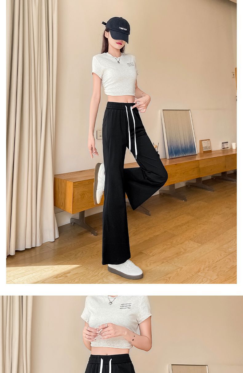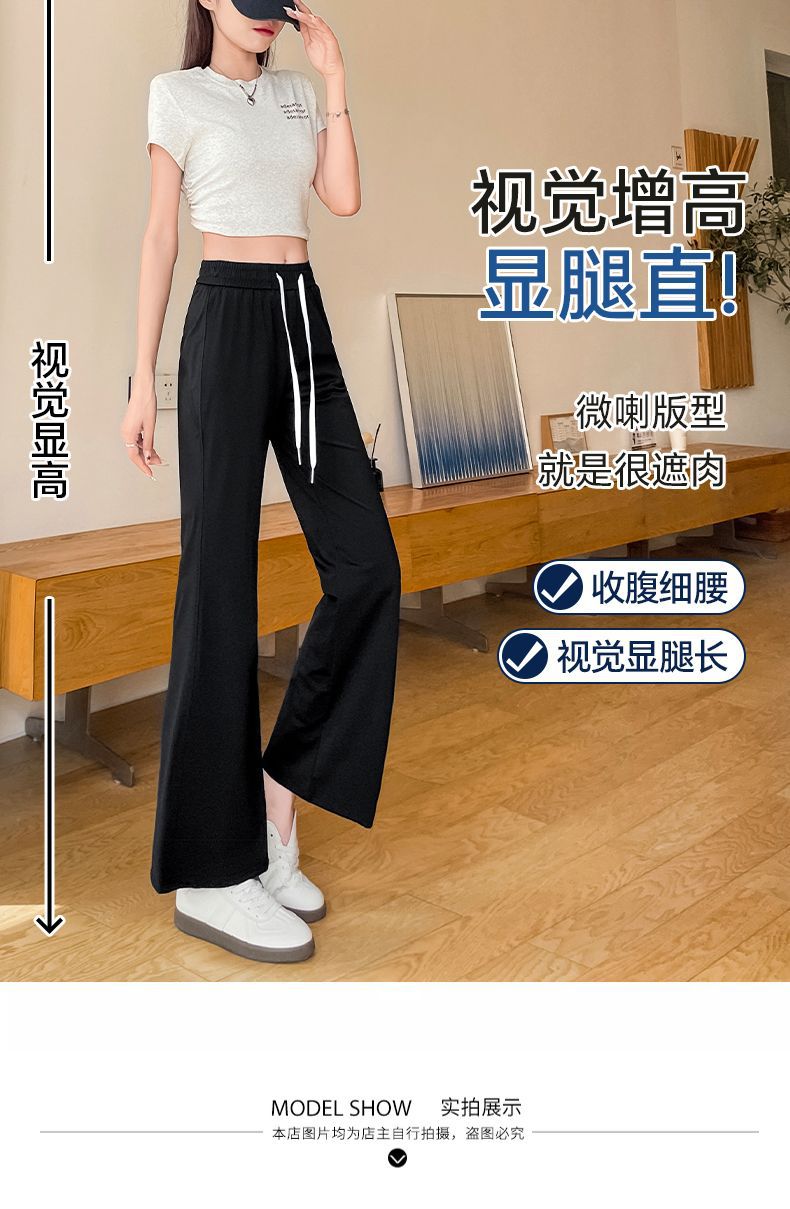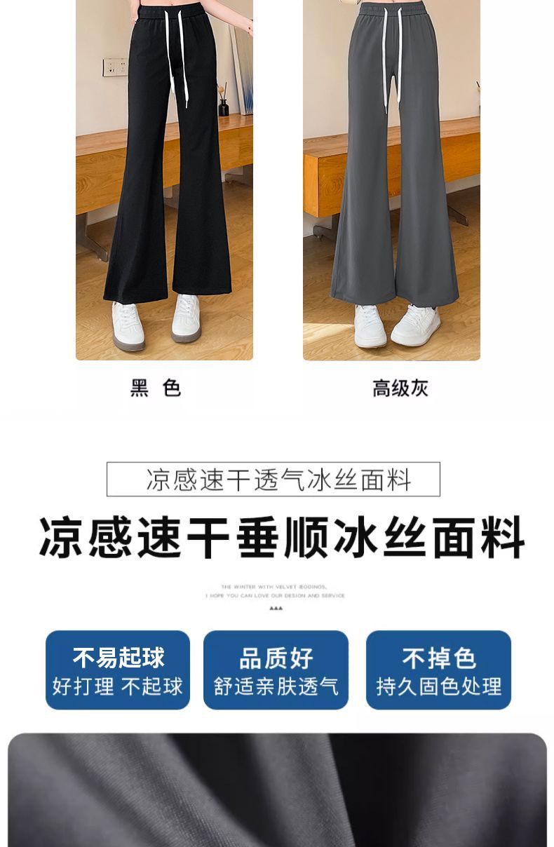 Летние тонкие утягивающие прямые быстросохнущие брюки, расклешенные брюки из ледяного шелка, женские универсальные повседневные спортивные брюки