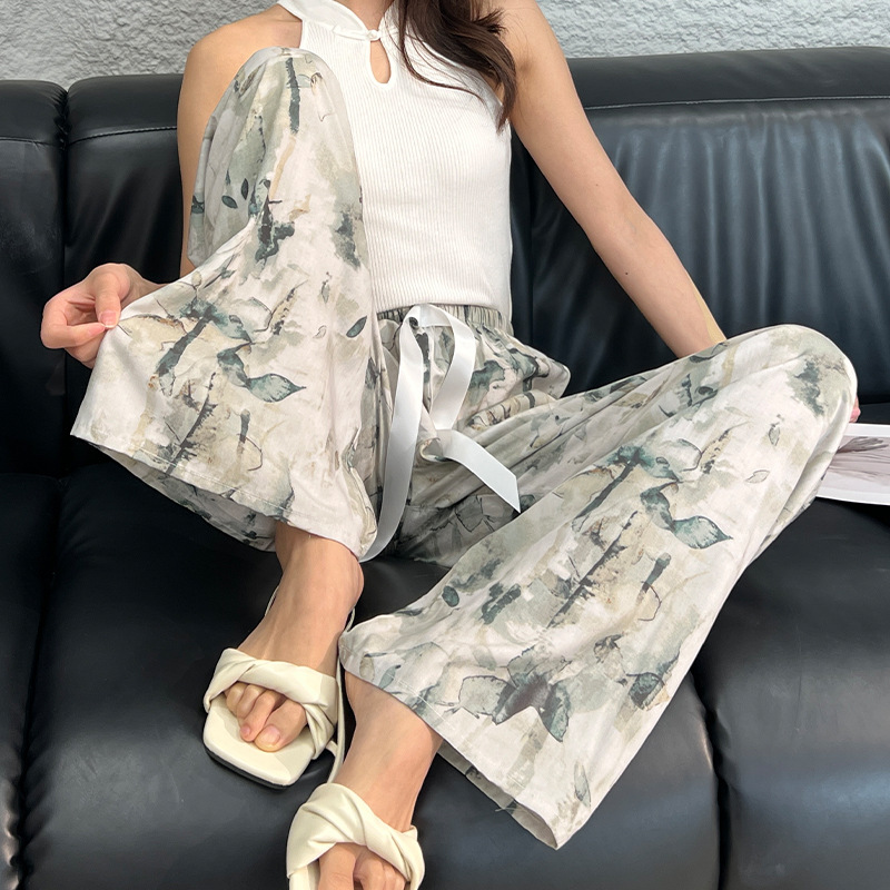 Летние тонкие стильные модные брюки из сикомора, хлопковые шелковые брюки для уличной одежды, женские свободные драпированные широкие брюки