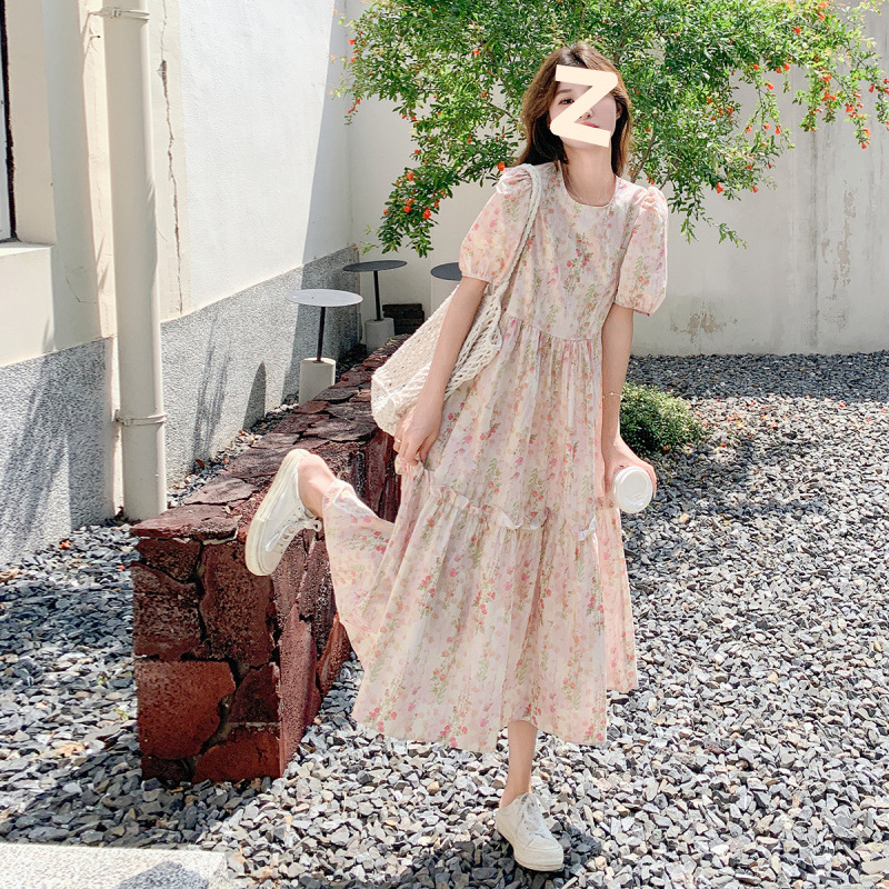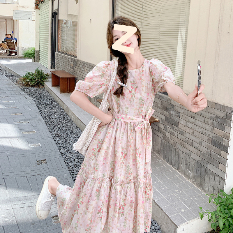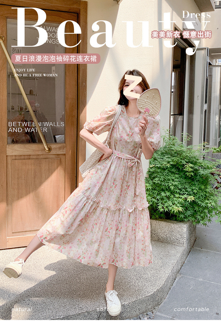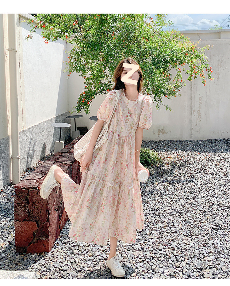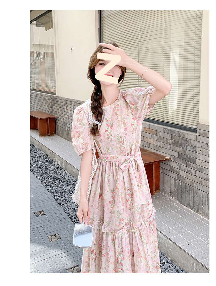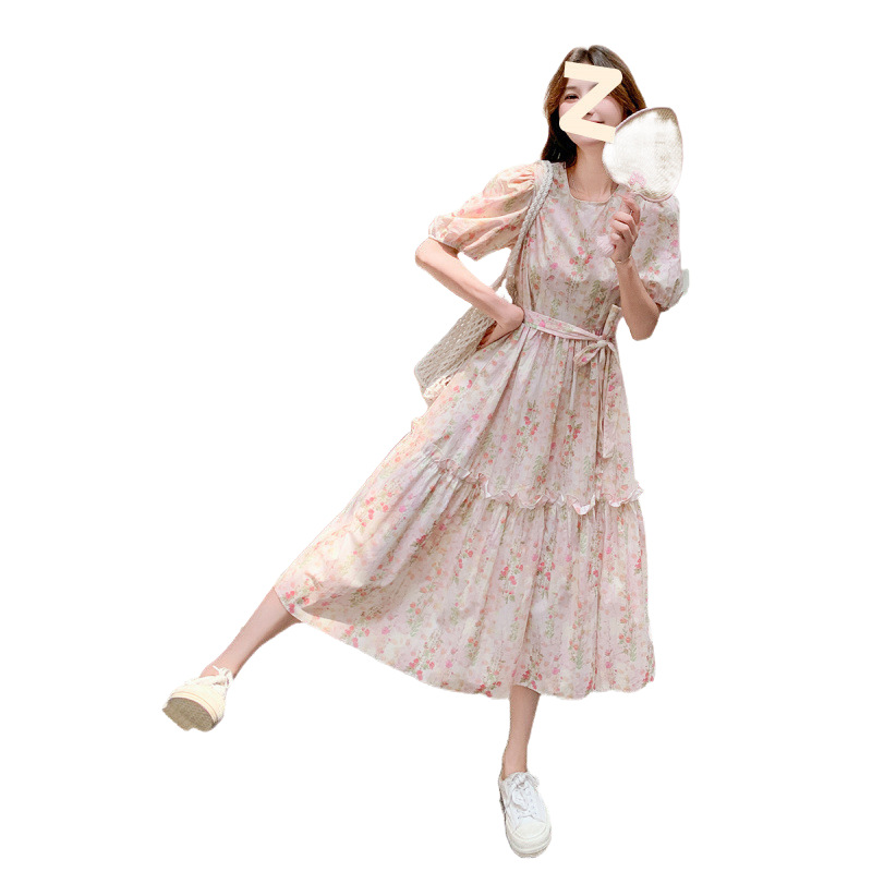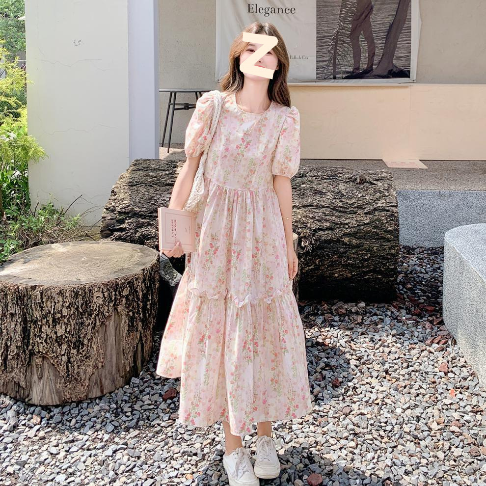 Летнее свежее новое корейское модное темпераментное платье, женское милое платье с короткими рукавами и талией, свободная юбка с цветочным принтом, тренд
