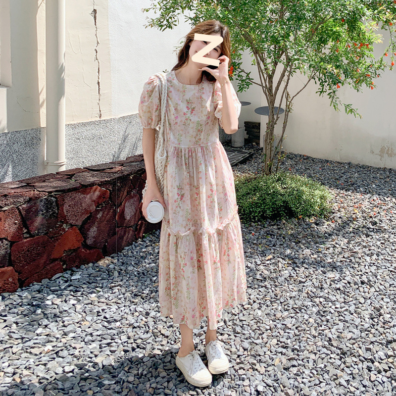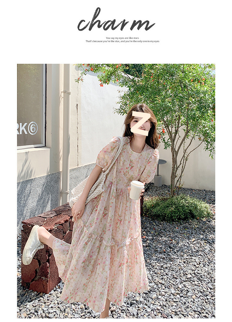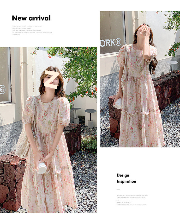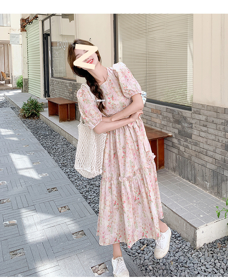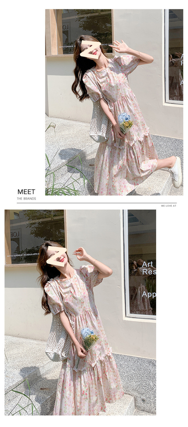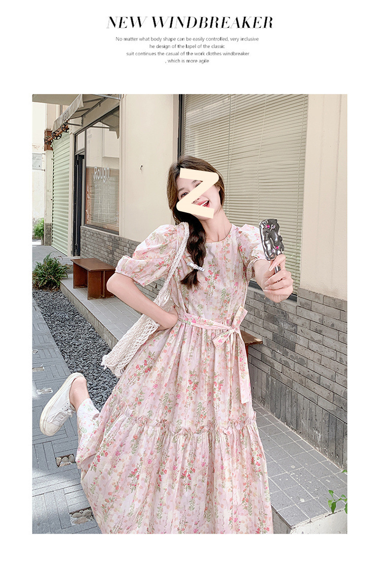 Летнее свежее новое корейское модное темпераментное платье, женское милое платье с короткими рукавами и талией, свободная юбка с цветочным принтом, тренд