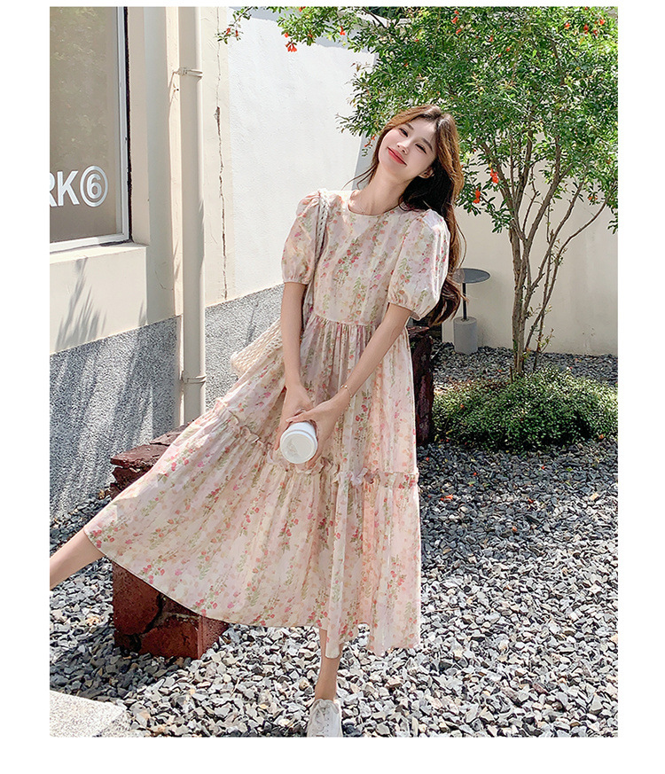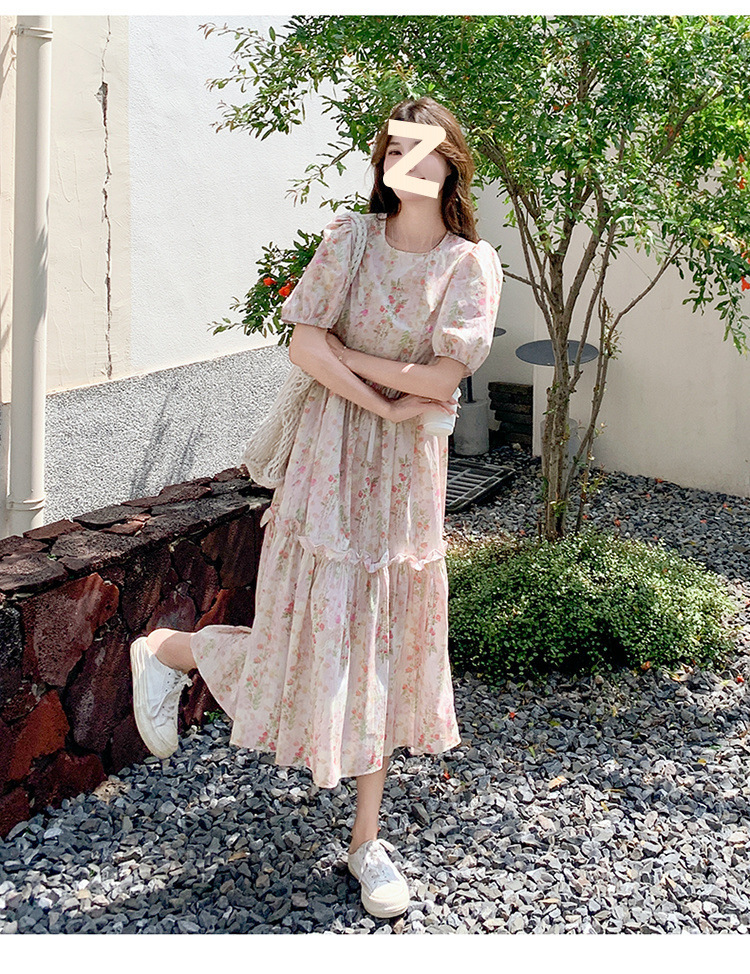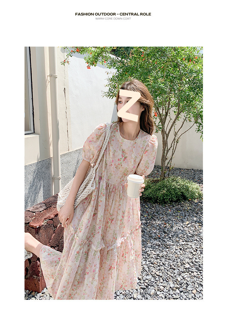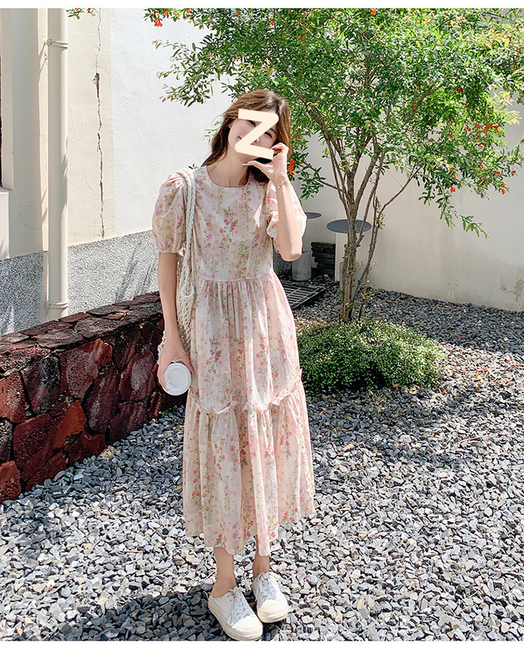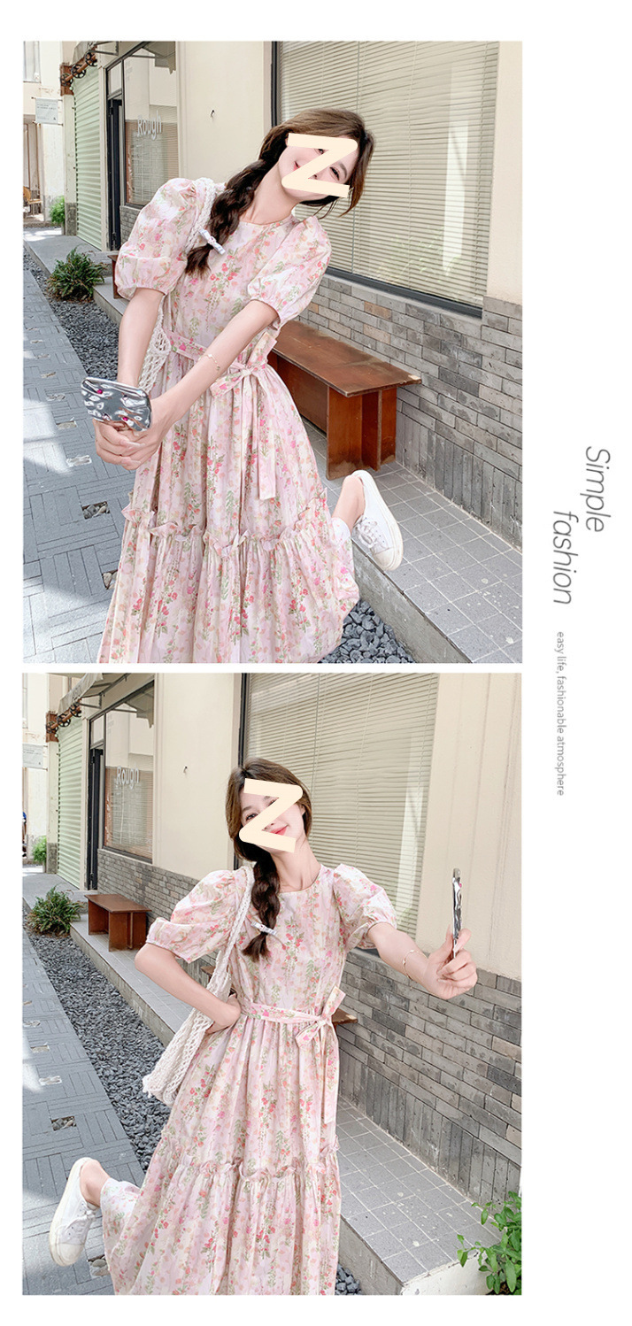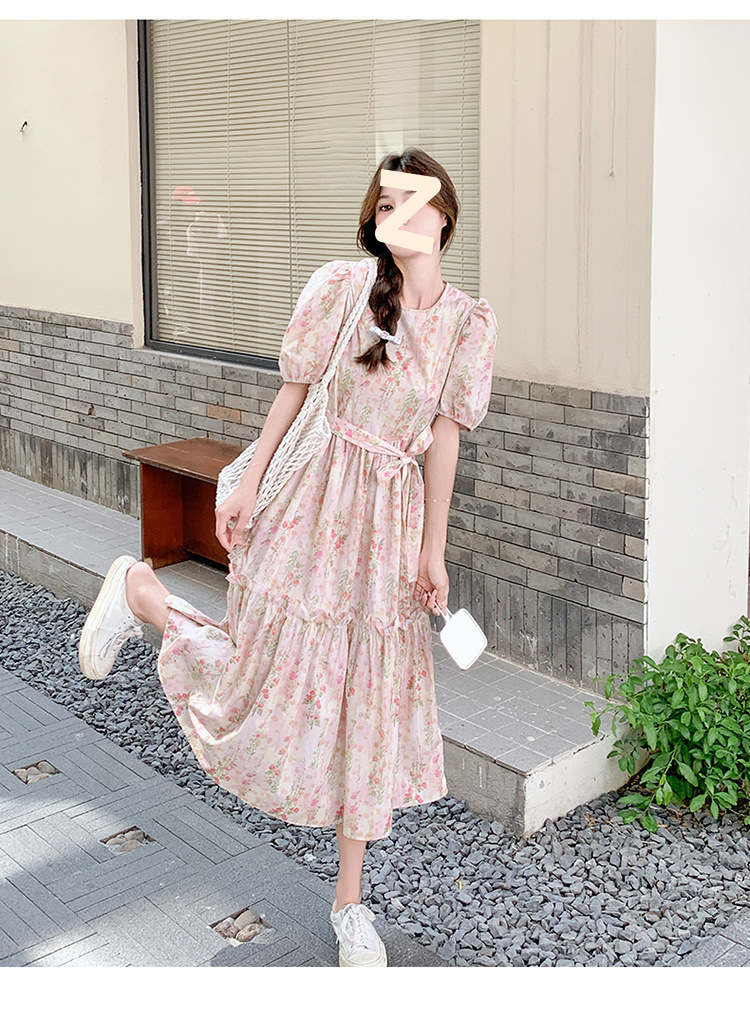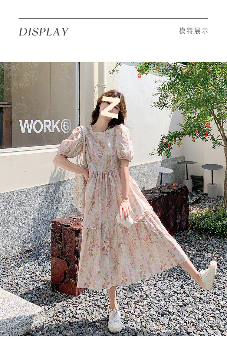 Летнее свежее новое корейское модное темпераментное платье, женское милое платье с короткими рукавами и талией, свободная юбка с цветочным принтом, тренд