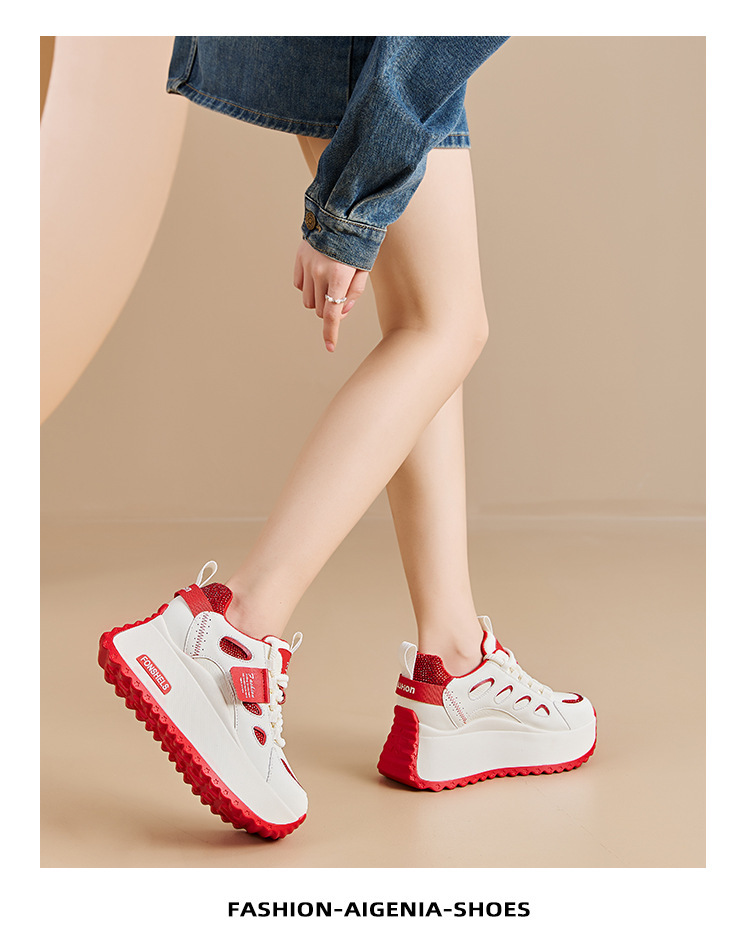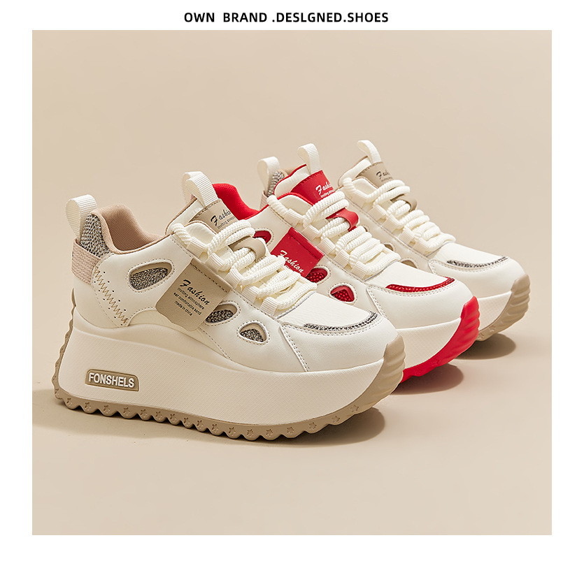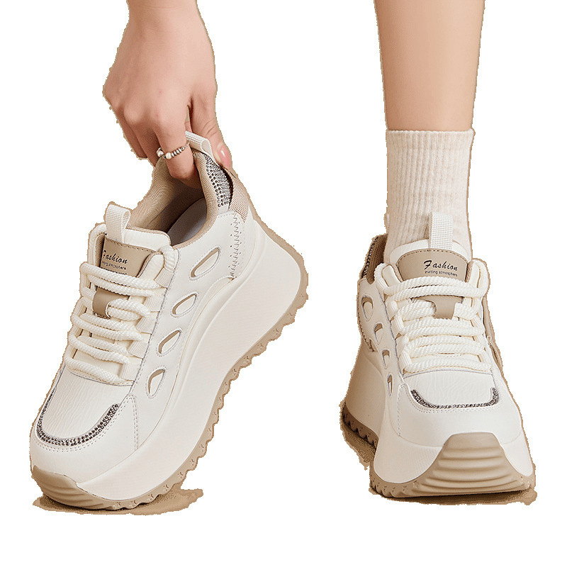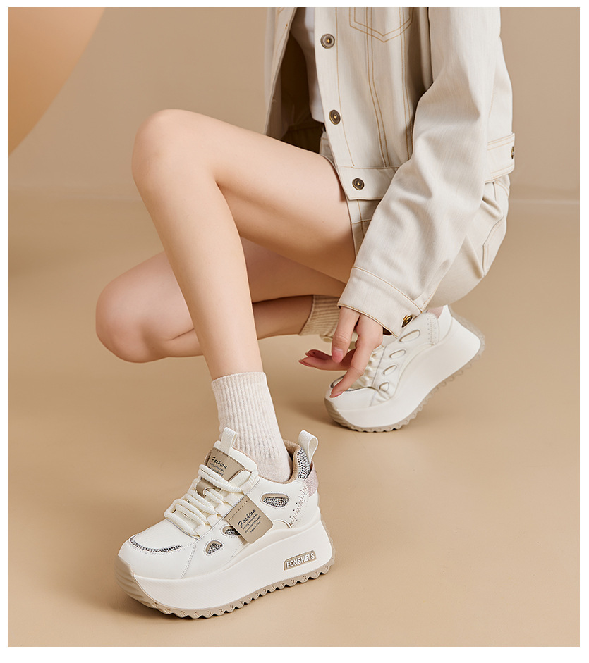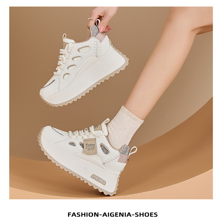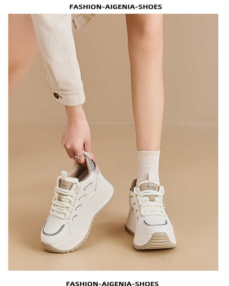 Новые высокие белые кроссовки для женщин весна 2025, на толстой подошве, увеличивающие рост, универсальные спортивные кроссовки, модные спортивные кроссовки для женщин