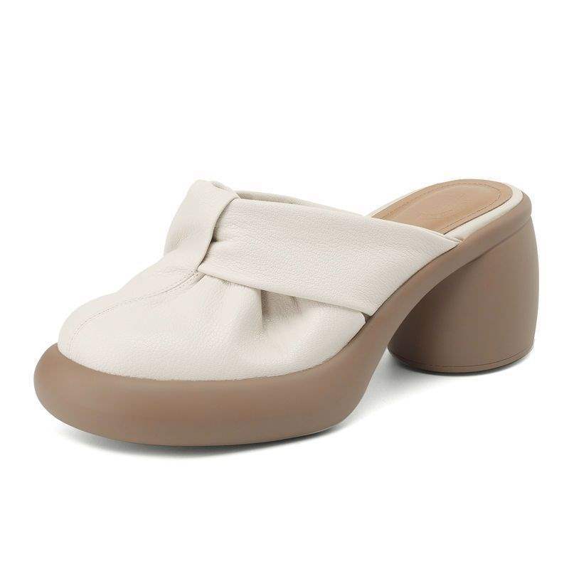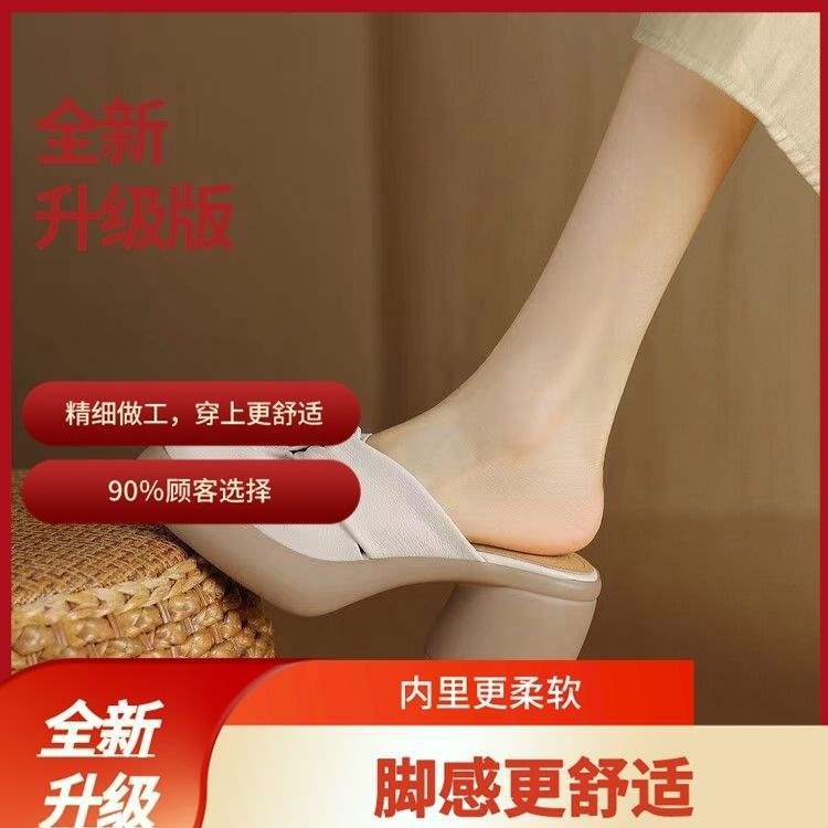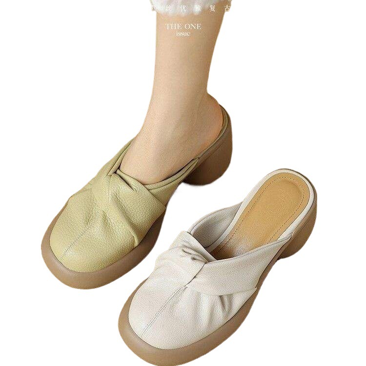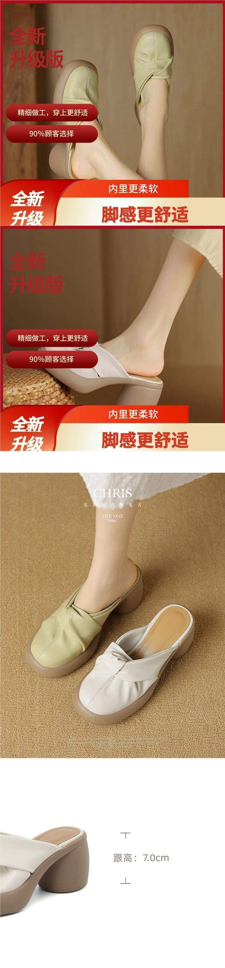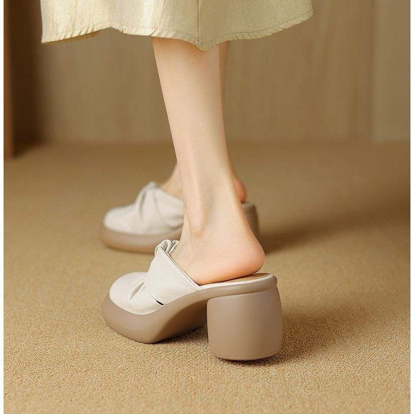 Женские летние мюли на толстой подошве и высоком каблуке с закрытым носком, универсальная обувь в иностранном стиле, 2025 год