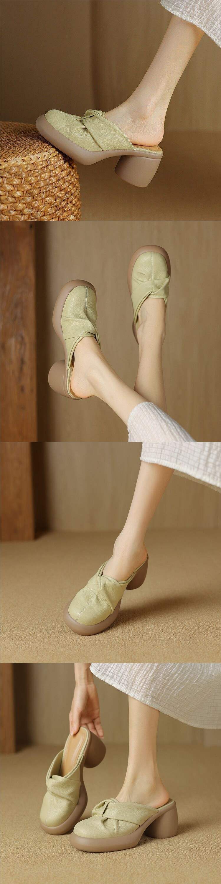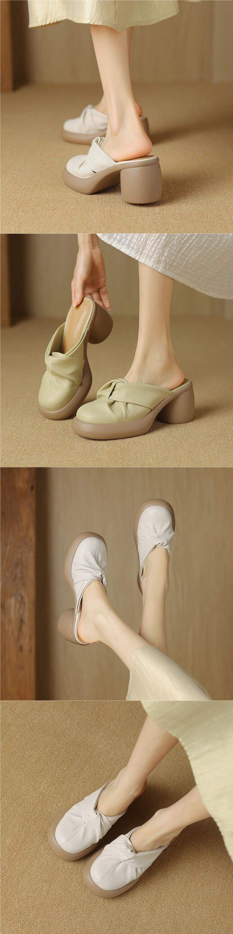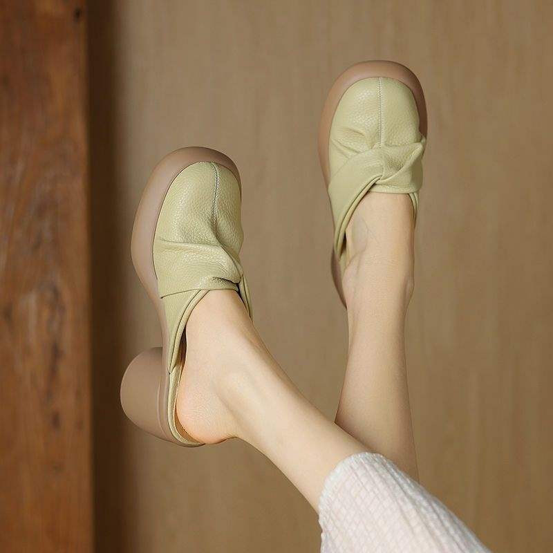 Женские летние мюли на толстой подошве и высоком каблуке с закрытым носком, универсальная обувь в иностранном стиле, 2025 год