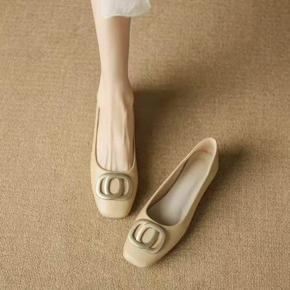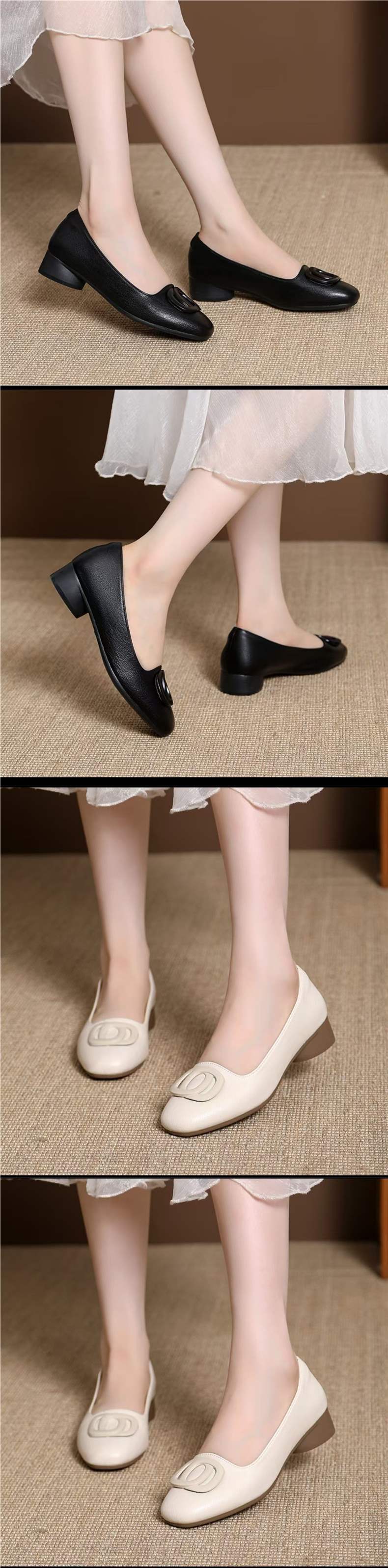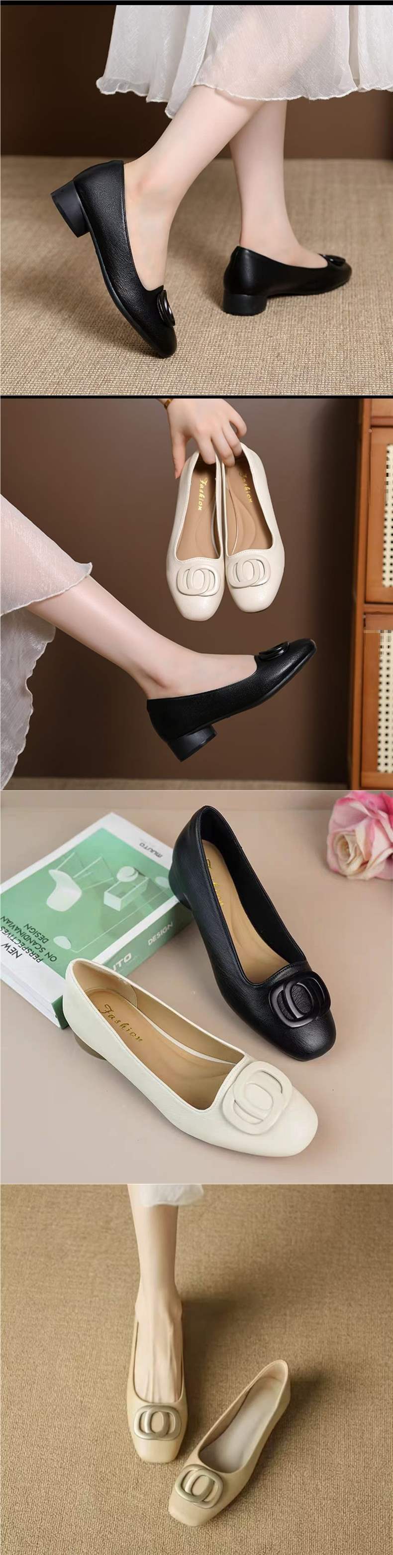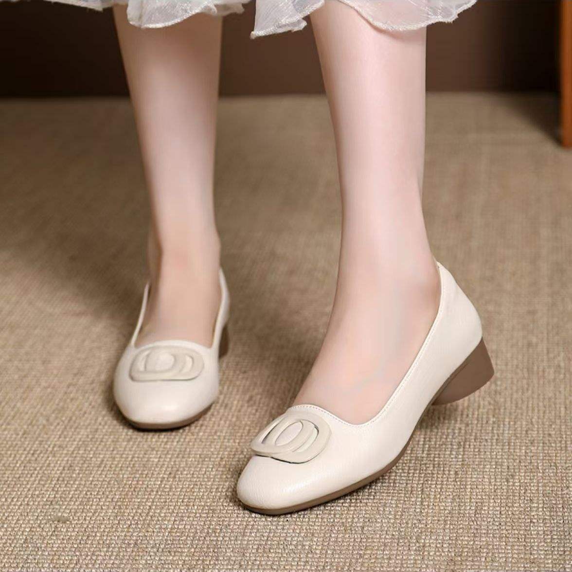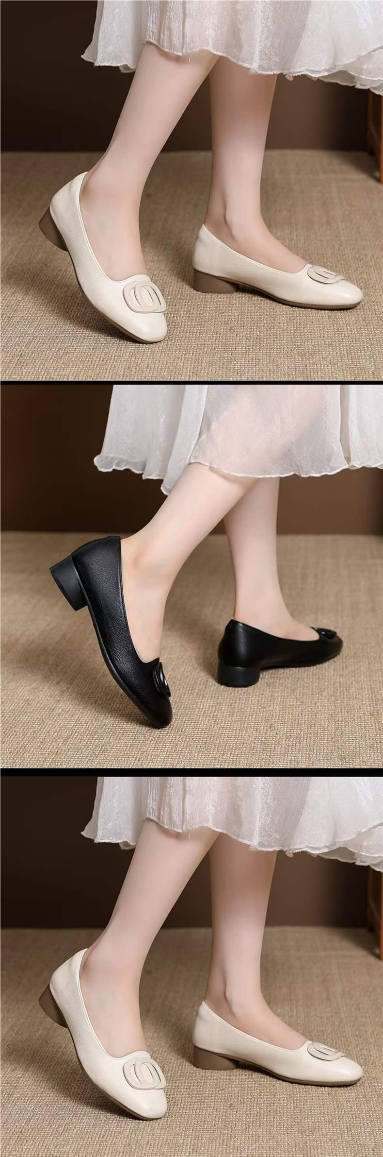 Женская обувь из мягкой кожи с квадратным носком, туфли из натуральной мягкой кожи, новый стиль 2025 года, универсальные туфли на высоком каблуке для мам с неглубоким носком, кожаные туфли на мягкой подошве