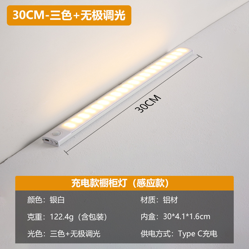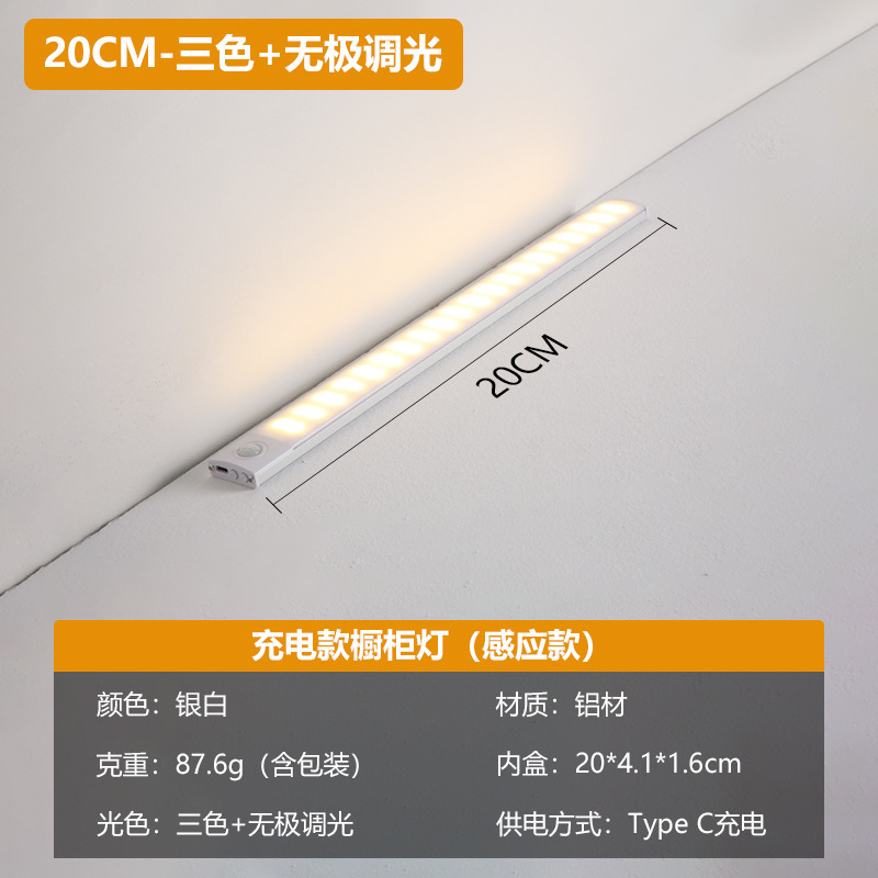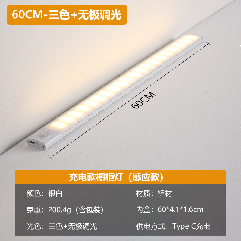 Ультратонкий умный трехцветный светодиодный светильник с датчиком человеческого тела, светодиодная лента для гардероба, длинная магнитная перезаряжаемая световая лента для винного шкафа