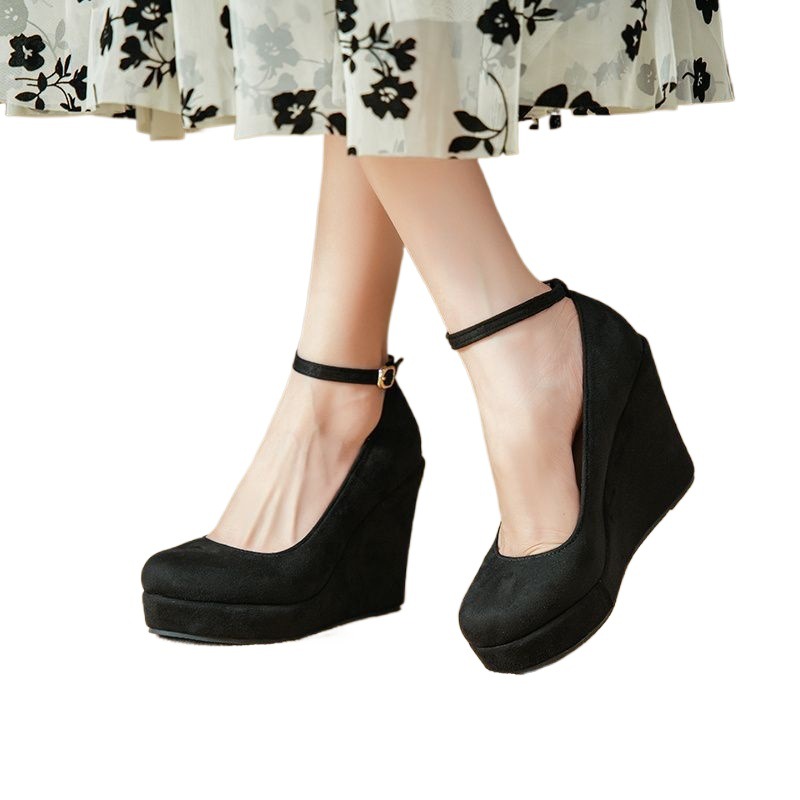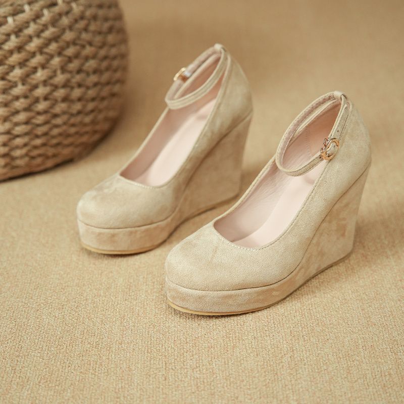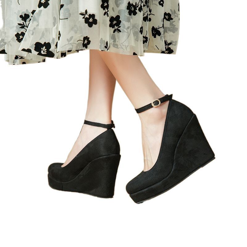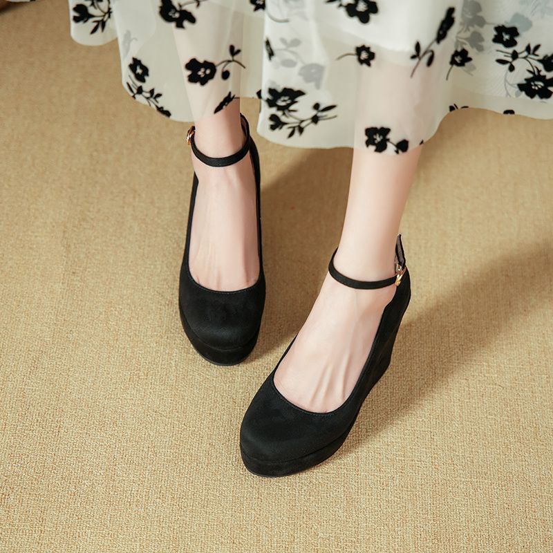 Женские водонепроницаемые рабочие туфли без шнуровки на танкетке с круглым носком и неглубокой платформой в европейском и американском стиле, универсальные удобные женские туфли на высоком каблуке для весны и лета