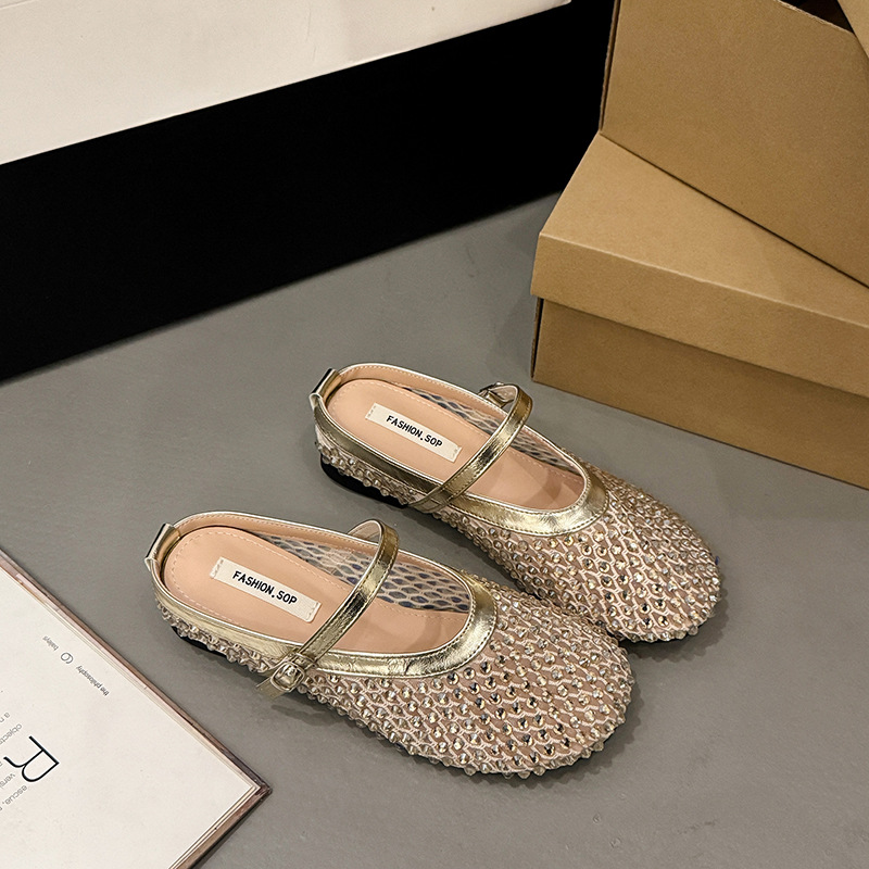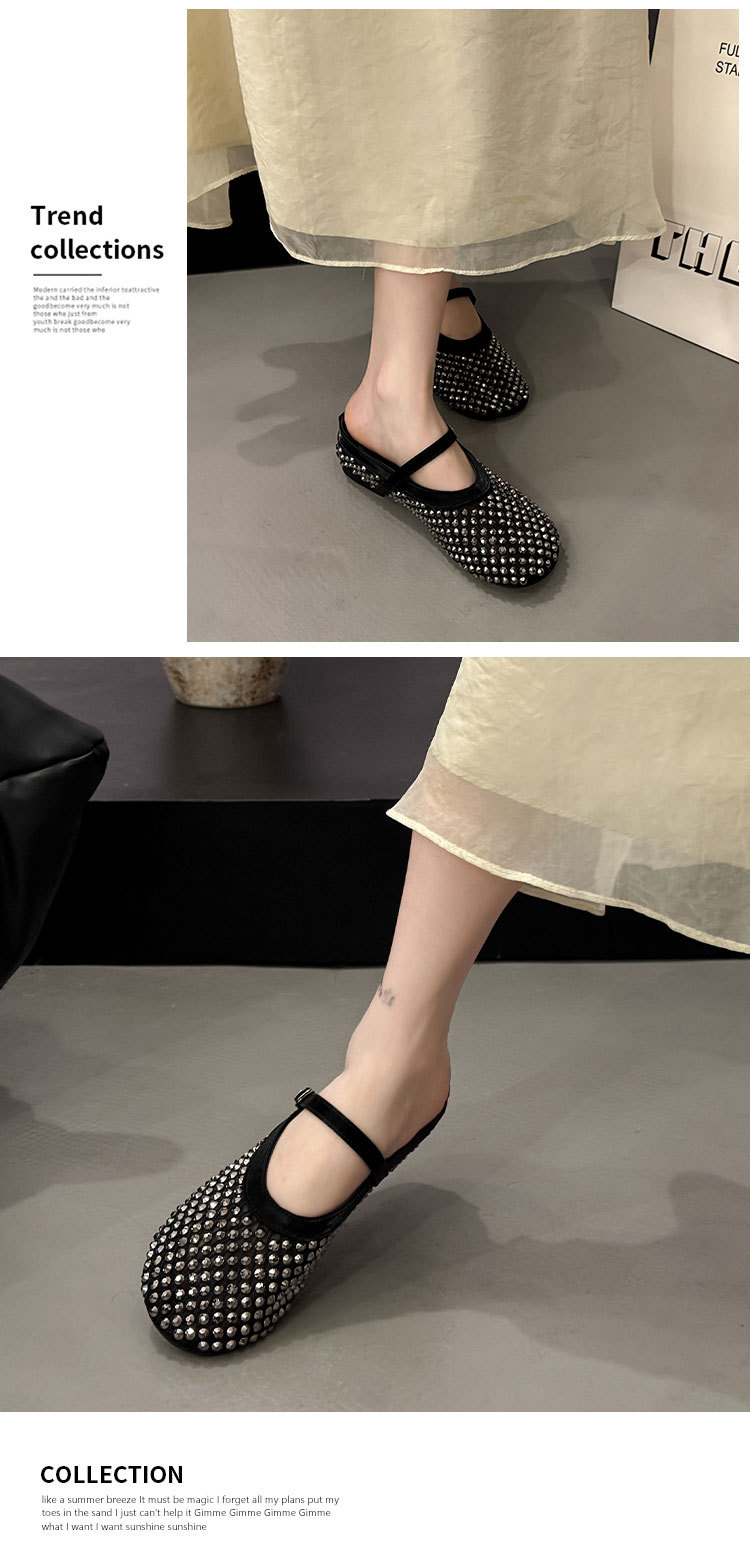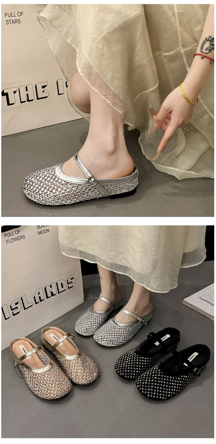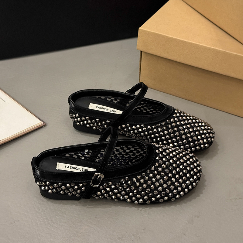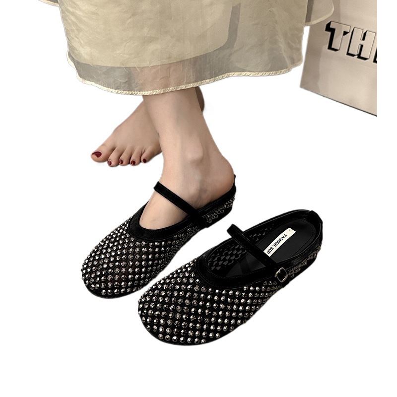 Летние босоножки Мэри Джейн с камнями для женщин, новинка лета 2025 года, летняя обувь, маленькие ароматные полусандалии