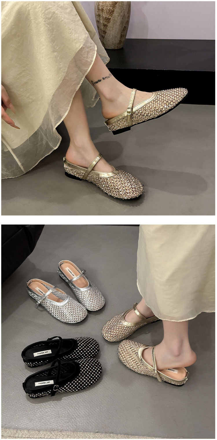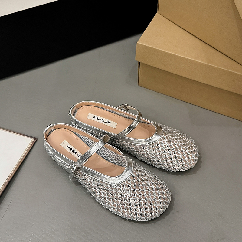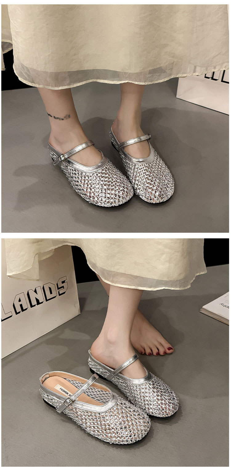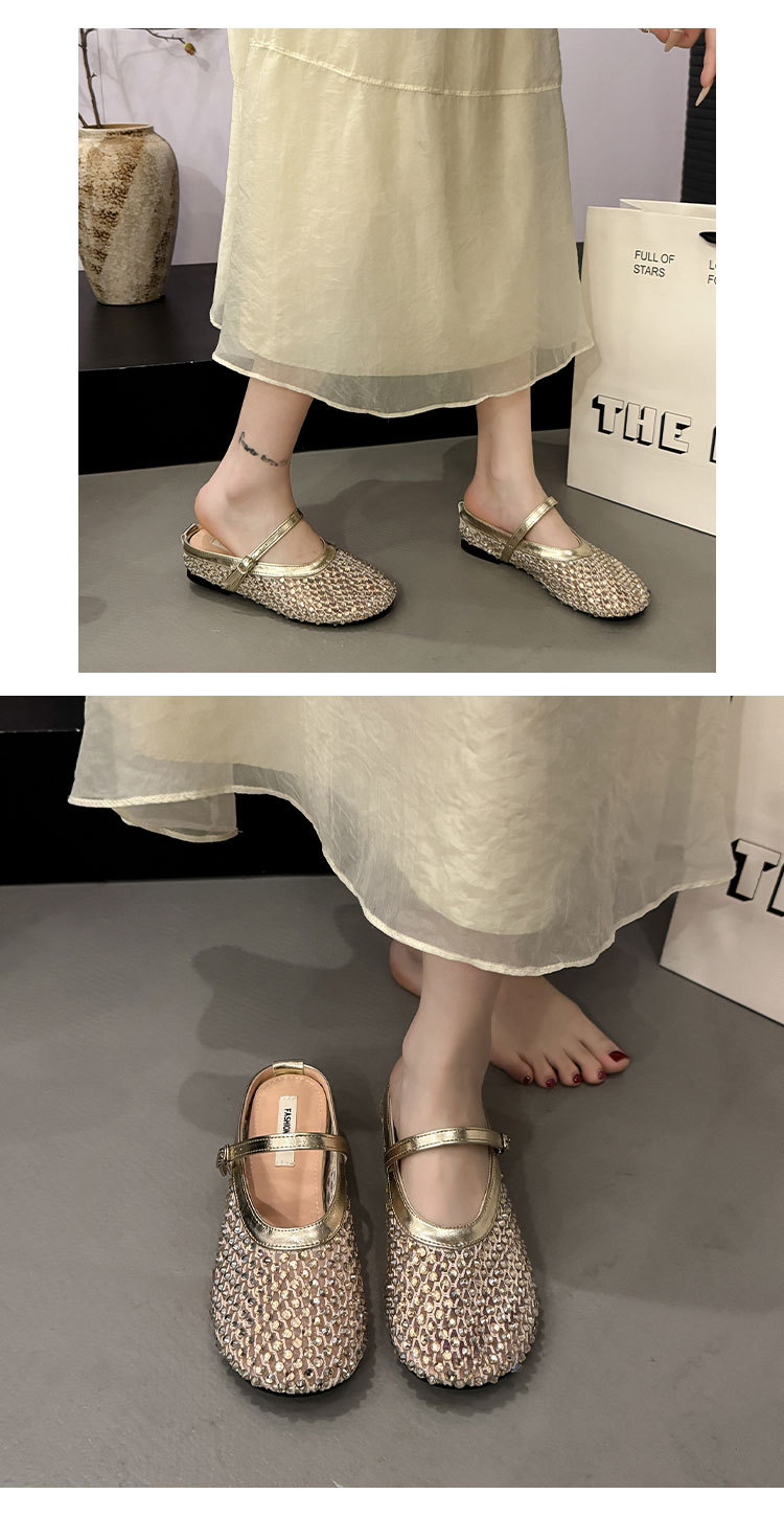Летние босоножки Мэри Джейн с камнями для женщин, новинка лета 2025 года, летняя обувь, маленькие ароматные полусандалии