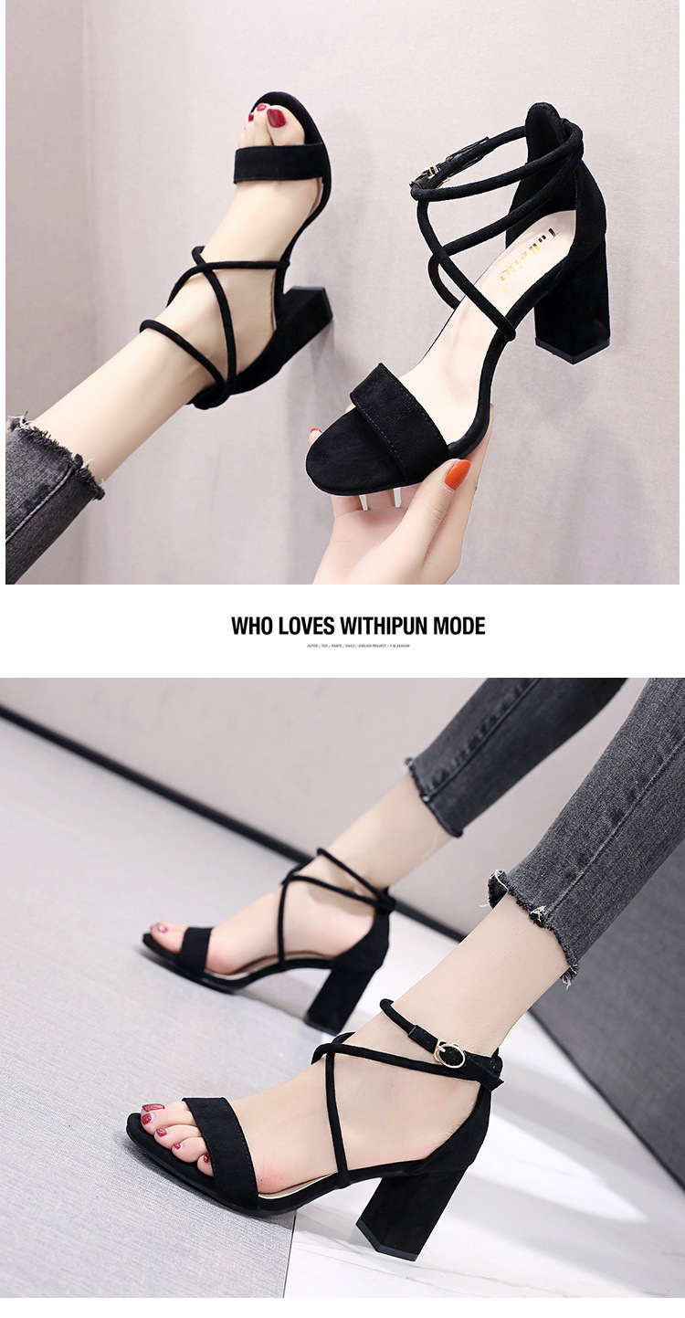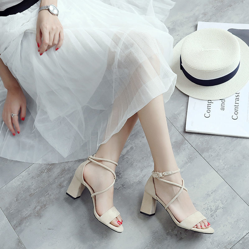2025 новых женских сандалий, летние, на среднем каблуке, на толстом каблуке и толстой подошве, в стиле феи, универсальные студенческие римские босоножки на высоком каблуке