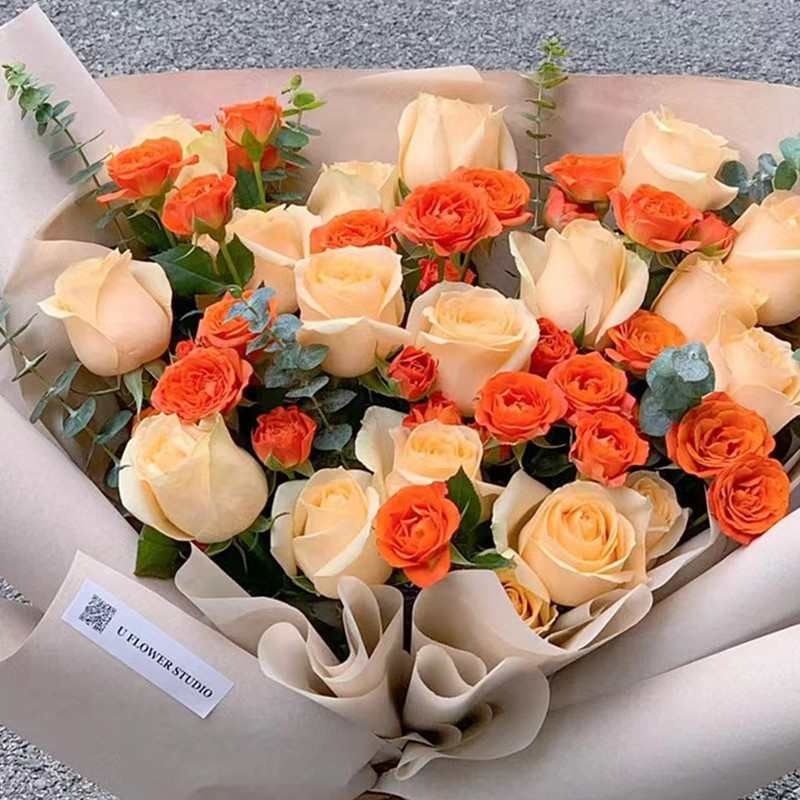 Многоголовый букет капучино из роз, маленькие свежесрезанные розы, доставка цветов из Юньнани, Куньмин, прямая доставка, экспресс-доставка.