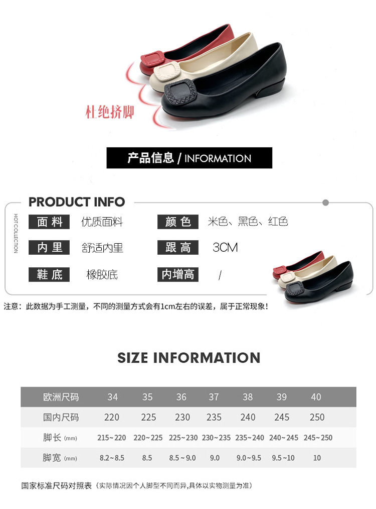 【关于尺码】模特试穿仅供产考由于每个人身形体重脚板宽度不同我们无法保证亲们收到货后穿起来一定合适。请见谅。对于鞋码问题产生的退换,在产品未影响二次销量的情况下{包括鞋盒一起寄回}来回运费自付的前提下【是指退货款不退运费因为之前一次从发货到亲们签收这个过程已经存在运费也已经产生快递是不会退运费给我们的】
