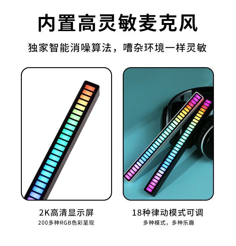 Ритмическое освещение, окружающее освещение, подсветка звукоснимателя, RGB-подсветка с голосовым управлением, автомобильная светодиодная атмосфера, оптовая продажа спектра датчиков настольной музыки