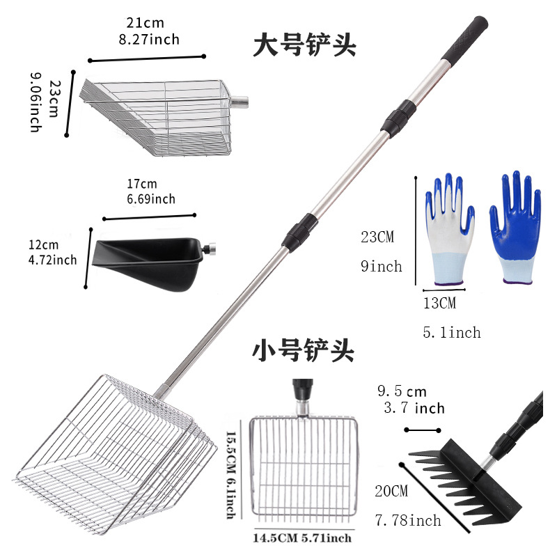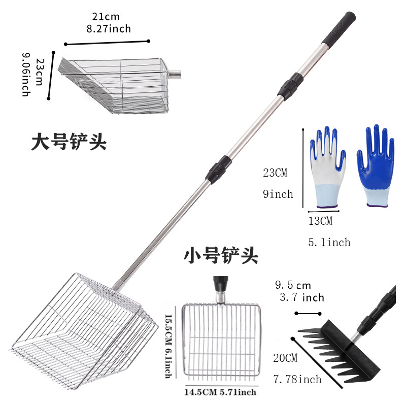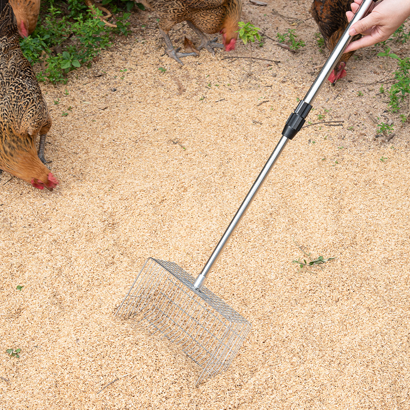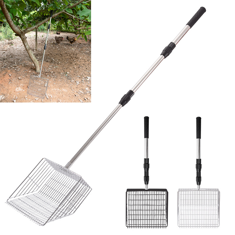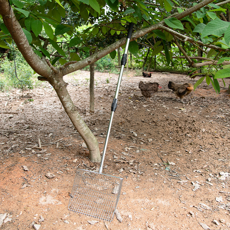 Очень большая лопата для куриного помета из нержавеющей стали с телескопической ручкой, металлическая лопата для куриного помета с удлиненной ручкой, инструмент для очистки куриного помета в курятнике.
