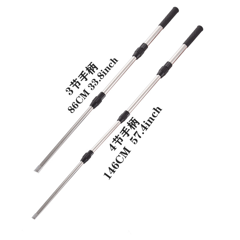 Трехсекционная ручка из нержавеющей стали (открытая 86 см); 4-секционная удлиненная ручка (146 см в открытом состоянии)