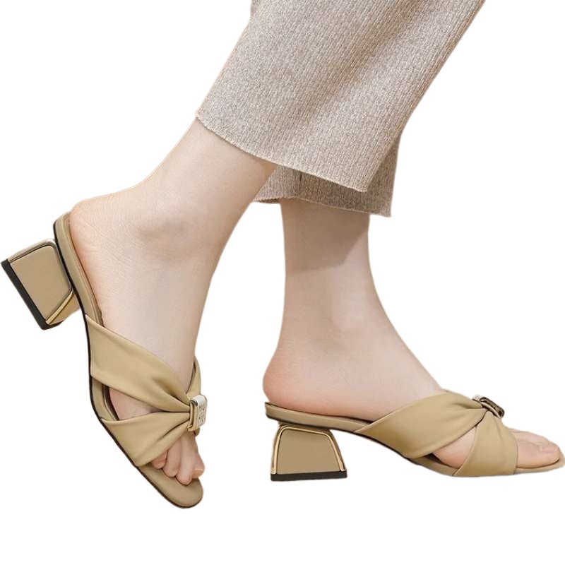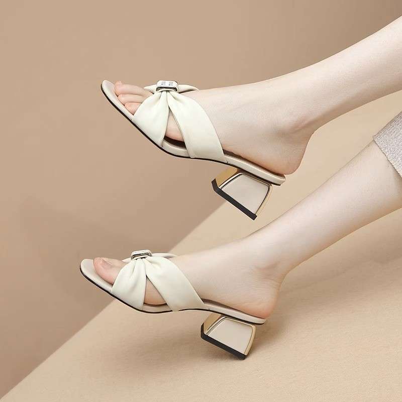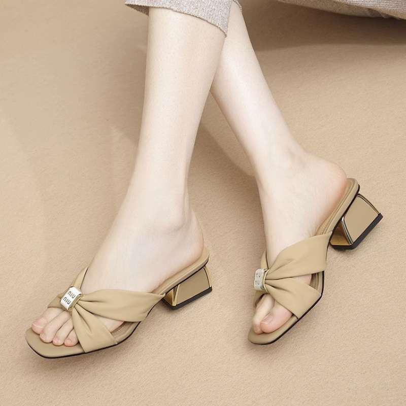 Французские маленькие сандалии для верхней одежды, сандалии на толстом каблуке, новая мода 2025 года, высококачественные мягкие кожаные тапочки на среднем каблуке для женщин
