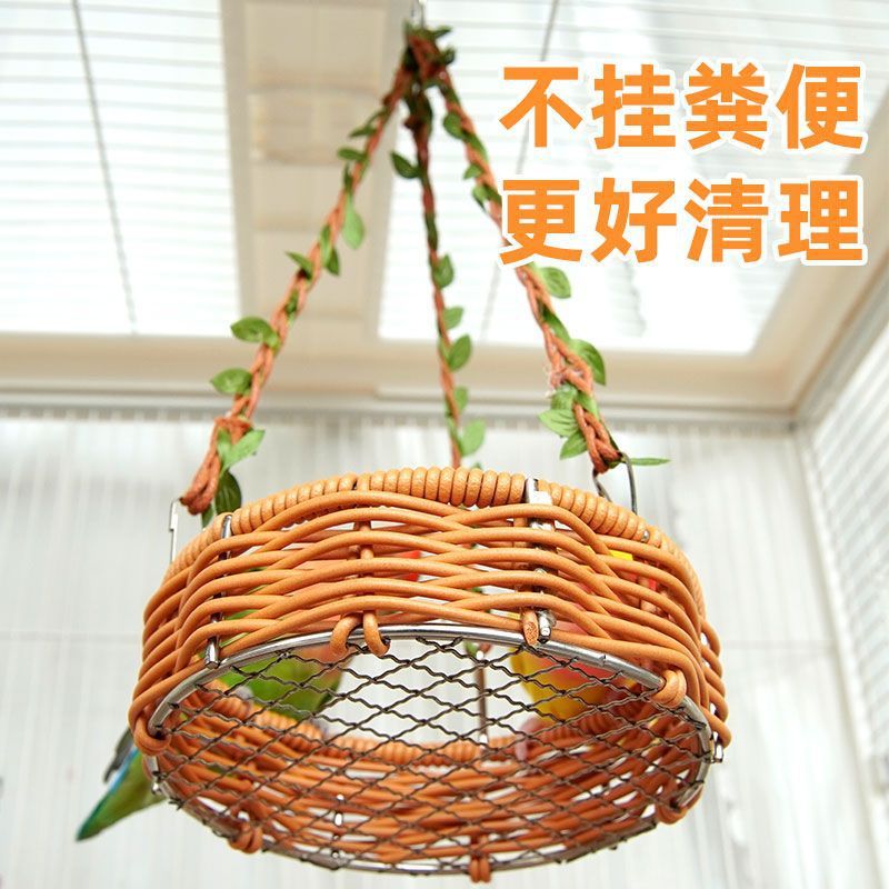 Птичье гнездо из ротанга ручной работы, квадратная подвесная корзина для попугая, осенний сушеный пион, черный феникс, вентилируемое дышащее дно, сетчатое птичье гнездо