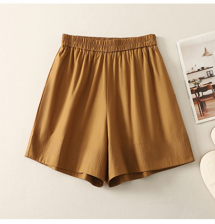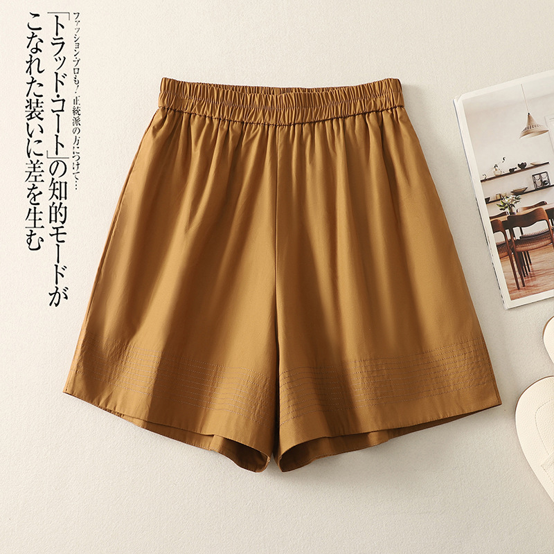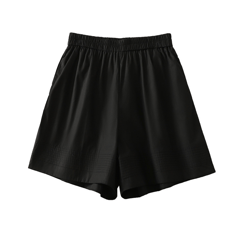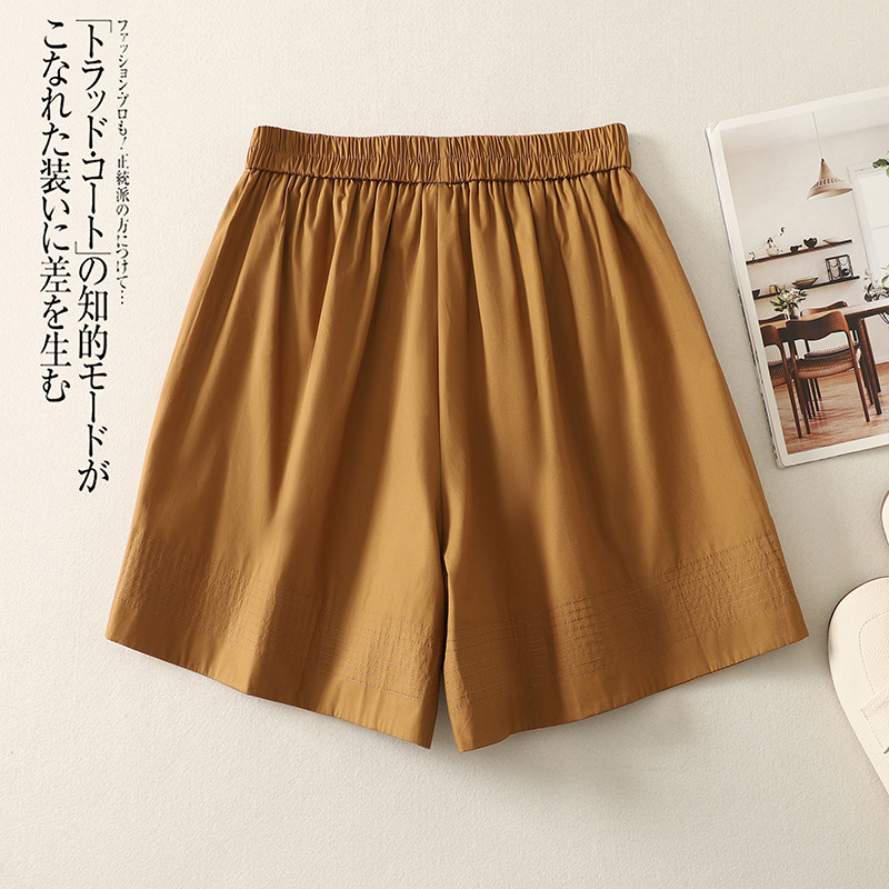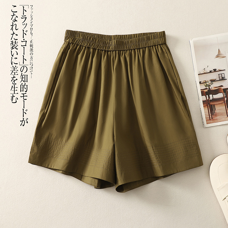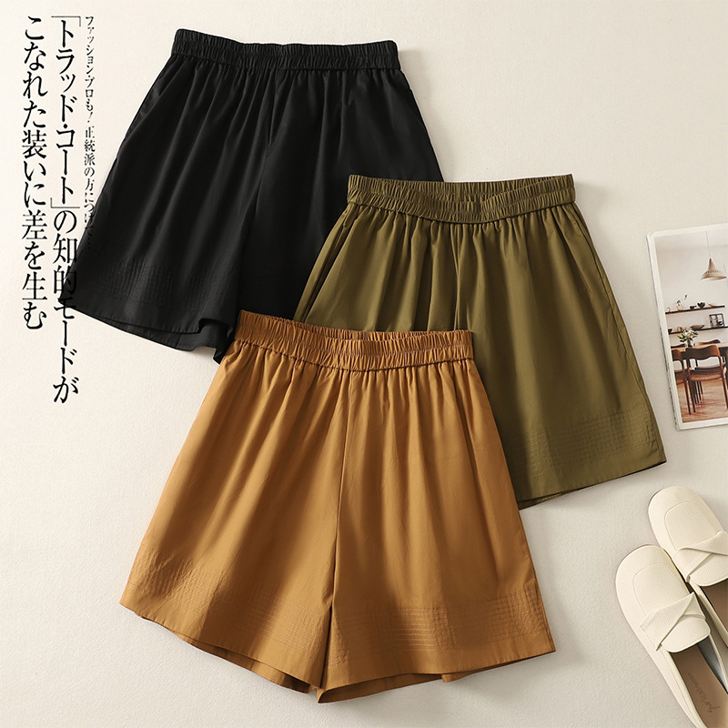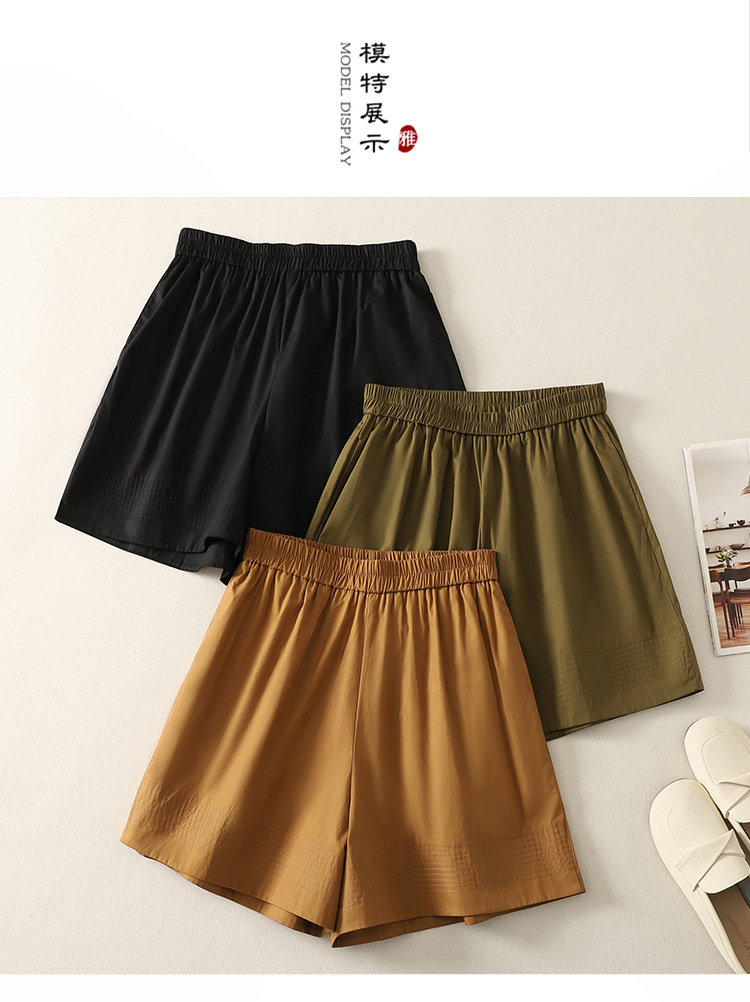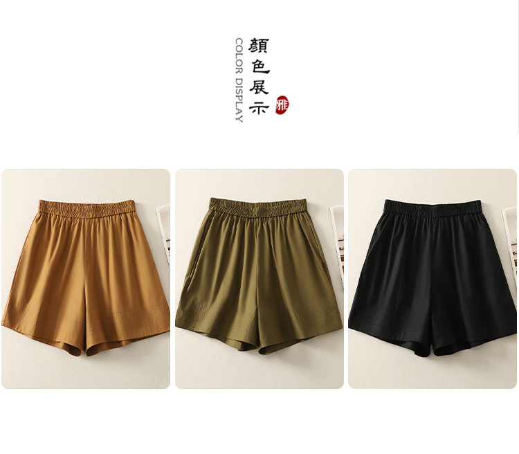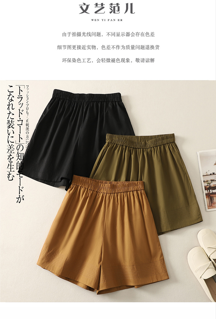 Настоящая фотография летних новых однотонных тканых свободных широких брюк для женщин, миниатюрные повседневные брюки трапециевидной формы с эластичной резинкой на талии для женщин