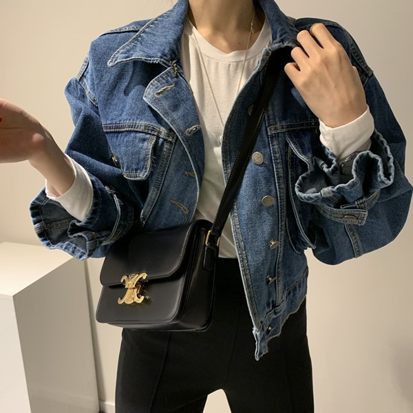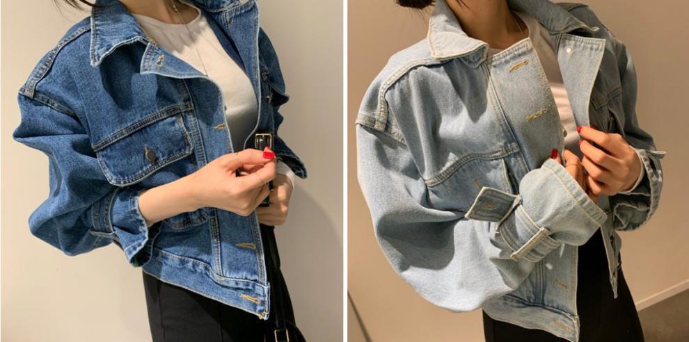Dongdaemun, новый корейский блоггер, рекомендует модную короткую джинсовую куртку свободного стиля с длинными рукавами и лацканами для женщин
