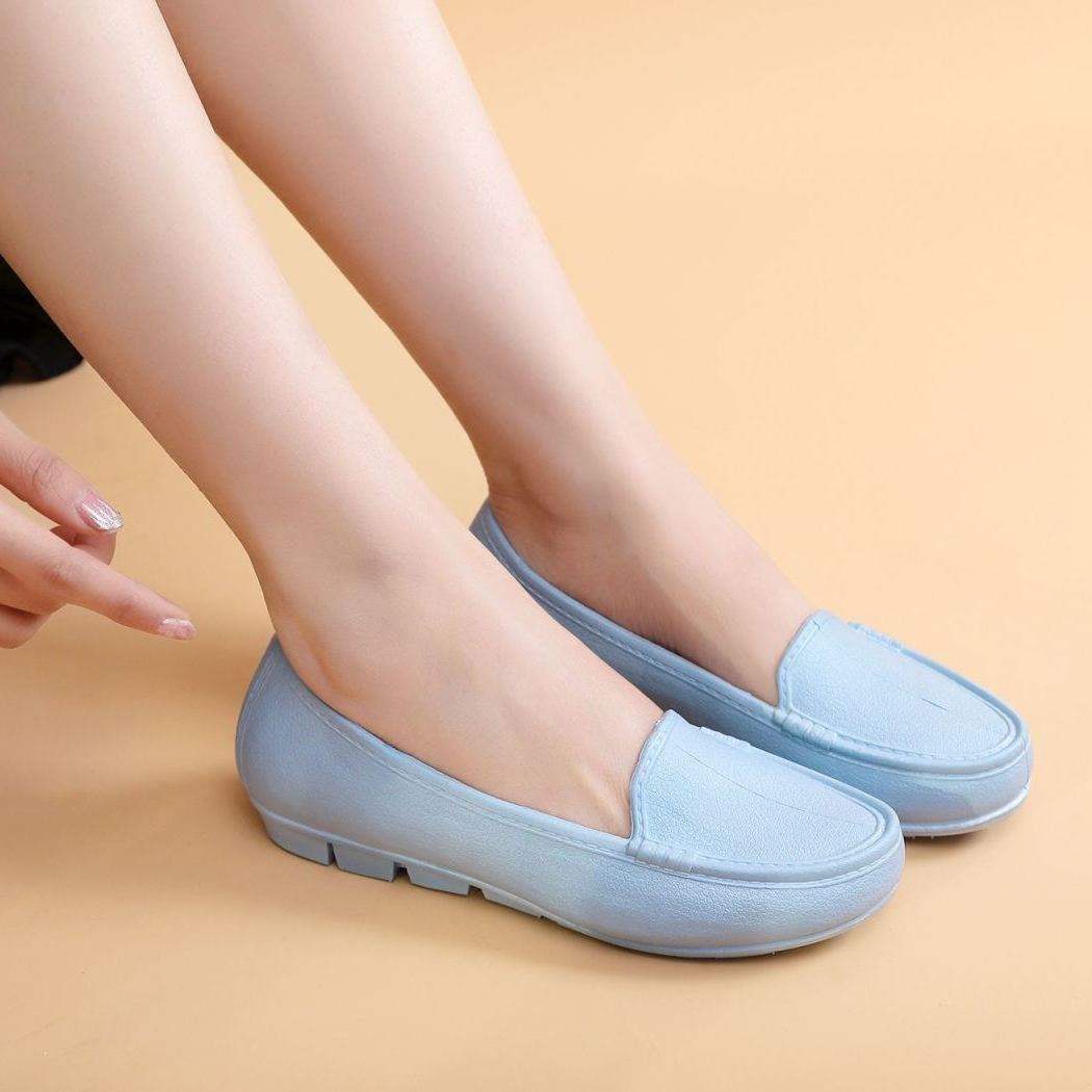 Туфли для медсестер на мягкой подошве, женская рабочая обувь по охране труда, водонепроницаемая и нескользящая повседневная обувь, цельные мягкие кухонные резиновые туфли.