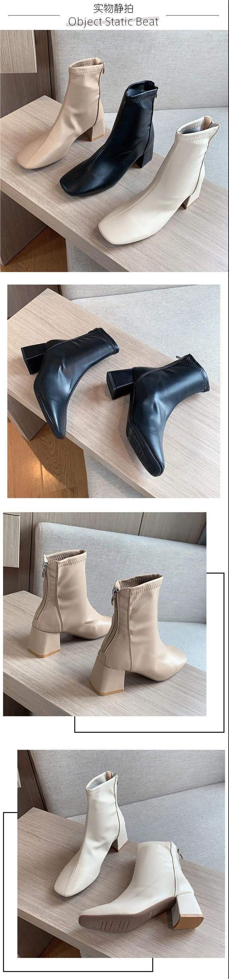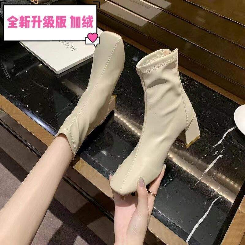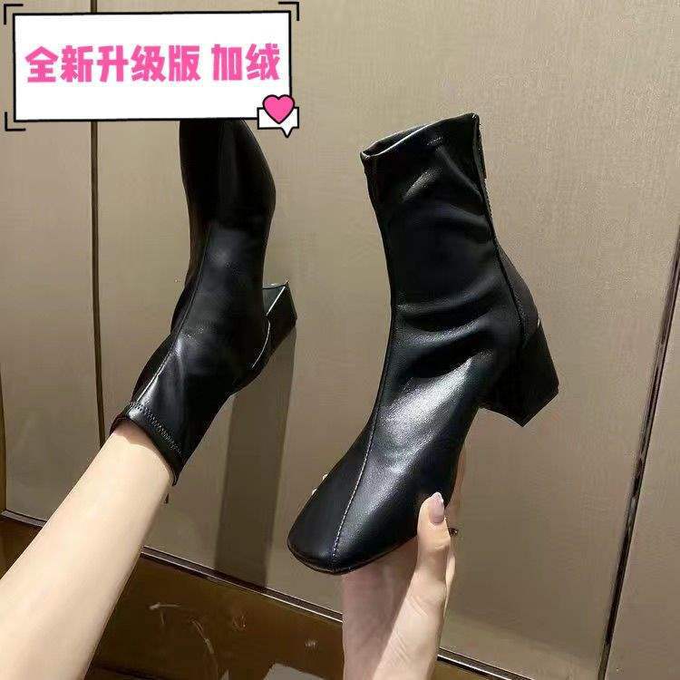 Ботинки женские в британском стиле 2025, новые весенне-осенние ботинки на квадратном носке, на толстом каблуке, стройные, на высоком каблуке, короткие ботинки