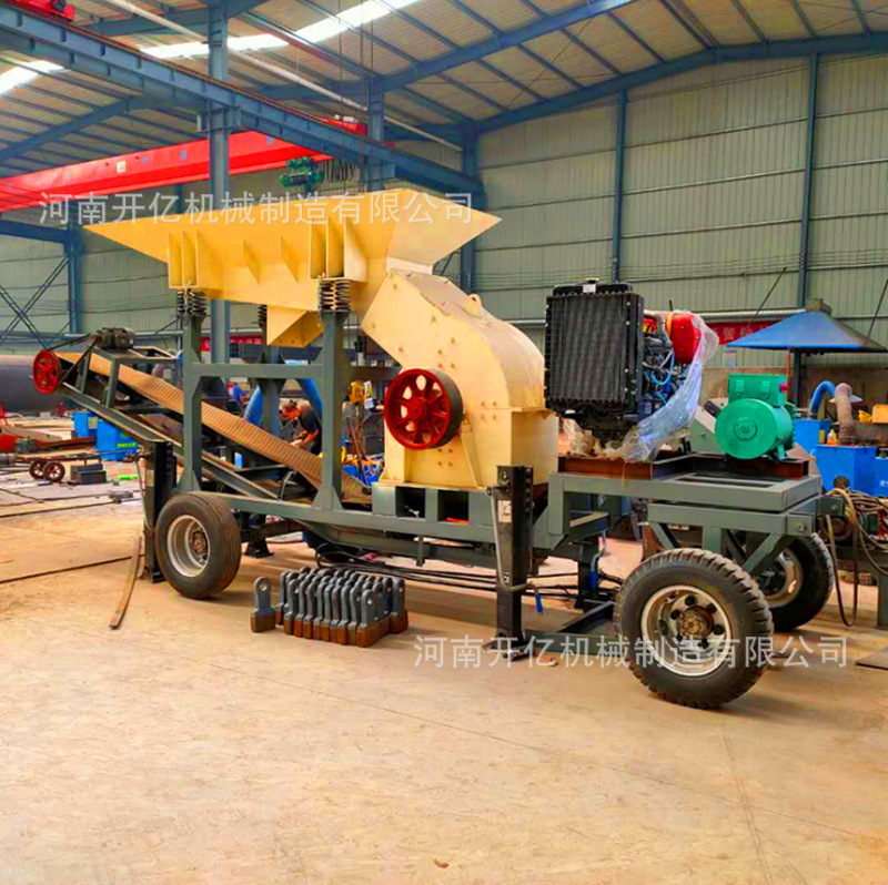 Дизельный молотковый пескоструйный станок, мобильная установка на колесном ходу для переработки строительных отходов, небольшая молотковая дробилка