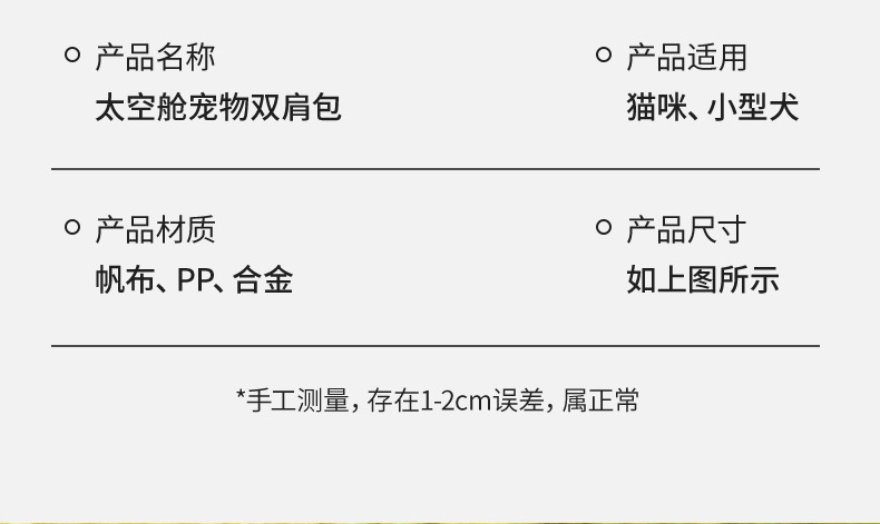 Визуальный стиль | Маленький рюкзак [ 6kg без забот]; Визуальная модель | Большой рюкзак [ 10kg без забот]; Космическое окно | Маленький рюкзак [Без забот]; Космическое окно | Большой рюкзак [ 10kg Без забот]; Подвесная капсула с пряжкой поставляется с 30 пакетами для уборки за собаками размером 27*30 см.; Складная миска для кормления 350 мл с подвесной пряжкой.; Портативный маленький чайник 350 мл со шнурком.; Портативный большой чайник 500 мл со шнурком.; Визуальный комплект: небольшая сумка + маленький чайник + миска для кормления; Видимая большая сумка + большой чайник + миска для кормления; Космическое окно, небольшая упаковка + небольшая бутылка с водой + миска для кормления; Сумка с окном для хранения + большой чайник + миска для кормления