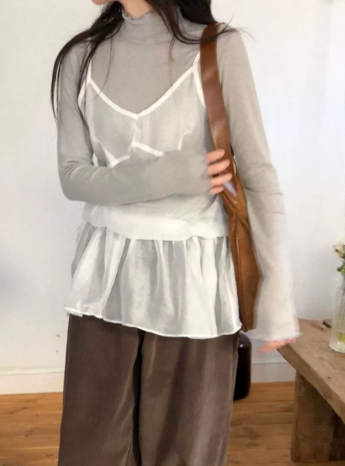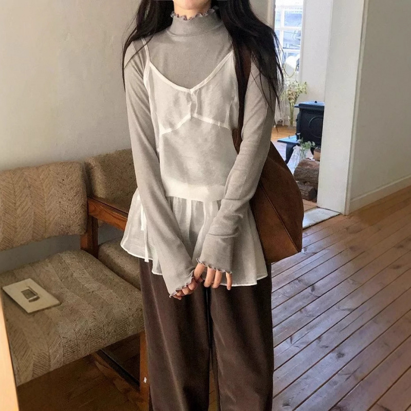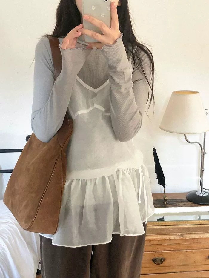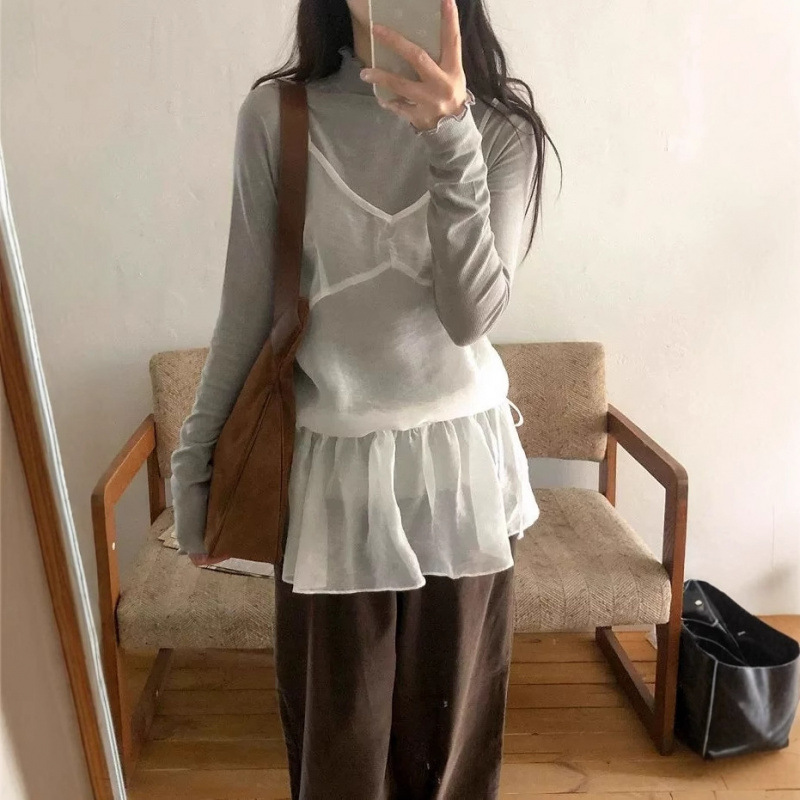 Новое корейское платье-миди с завязками на талии, тонкое, полупрозрачное, многослойное, на бретелях, ранняя весна 2025 года