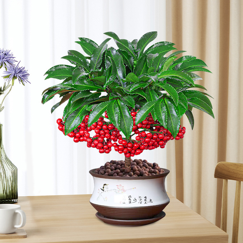 Комнатное растение с красными плодами для гостиной, простое в уходе, цветы и зеленые растения в горшке