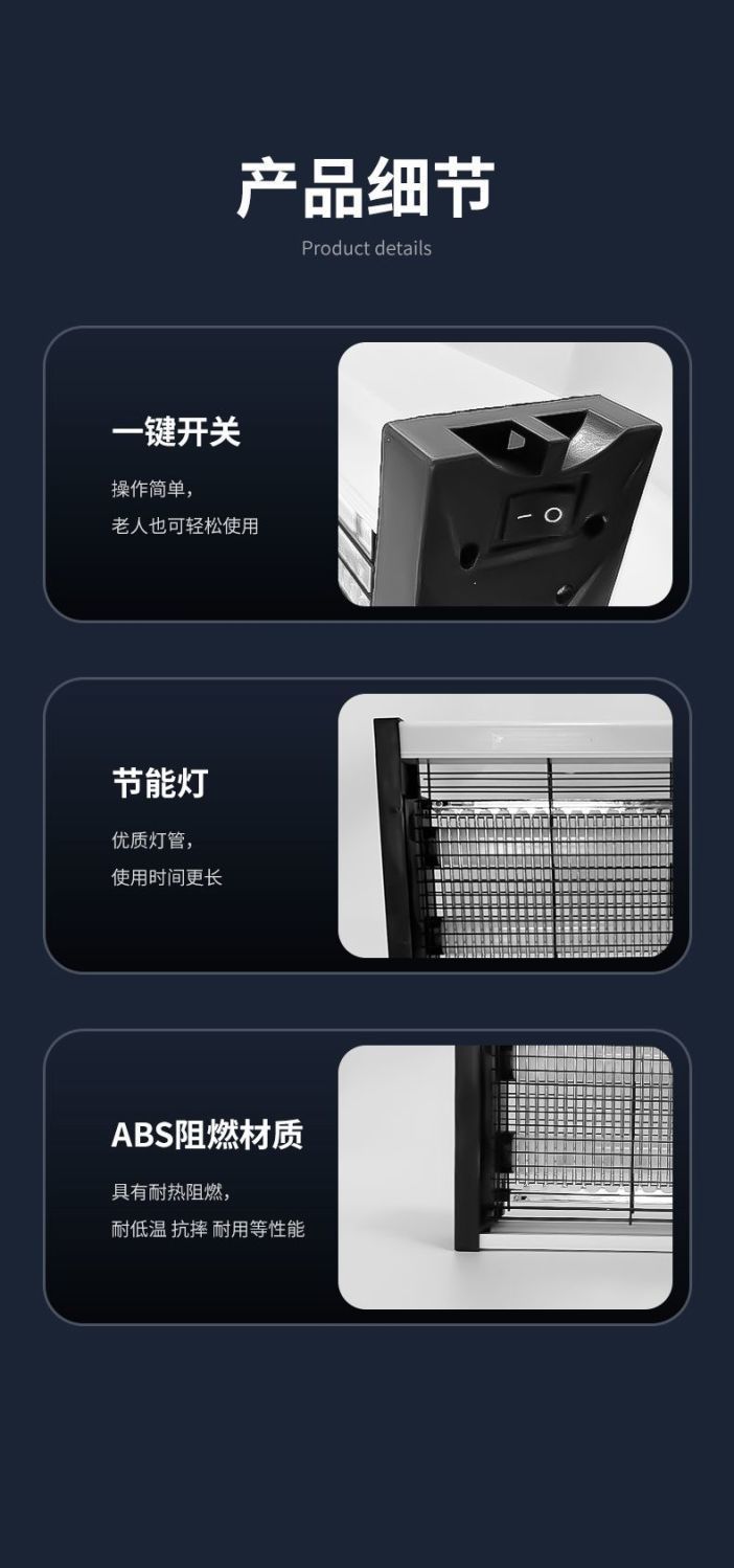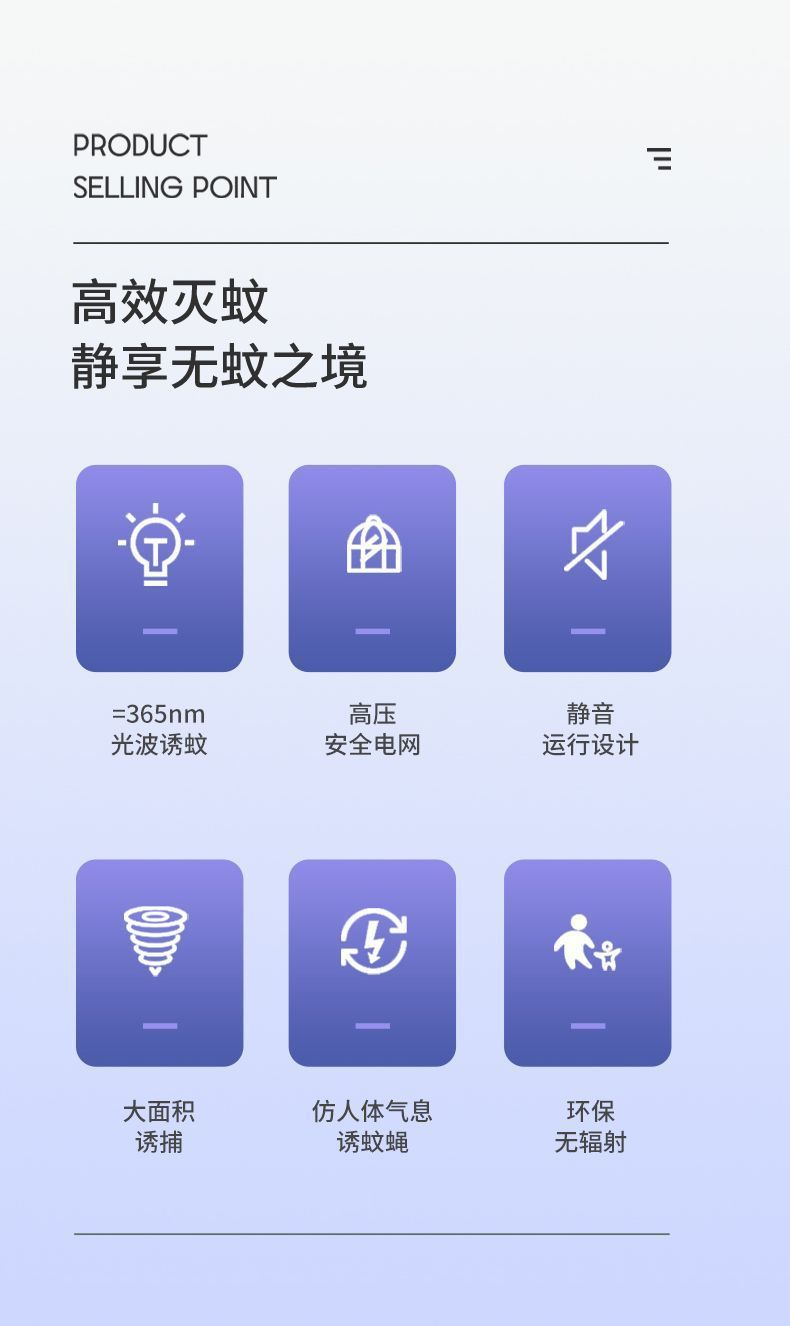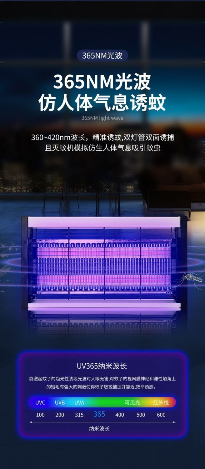 [Энергосбережение] 60 Вт (10-120 квадратных метров); [Электрический шок] 40 Вт (10-100 квадратных метров); [Убийца комаров] 20 Вт (10–80 квадратных метров); [Ловушка для комаров с фиолетовым светом] 10 Вт (10-60 квадратных метров); [Фиолетовый светодиод] Обычная модель 4 Вт; Лампа от комаров мощностью 2 Вт (пробная лампа)