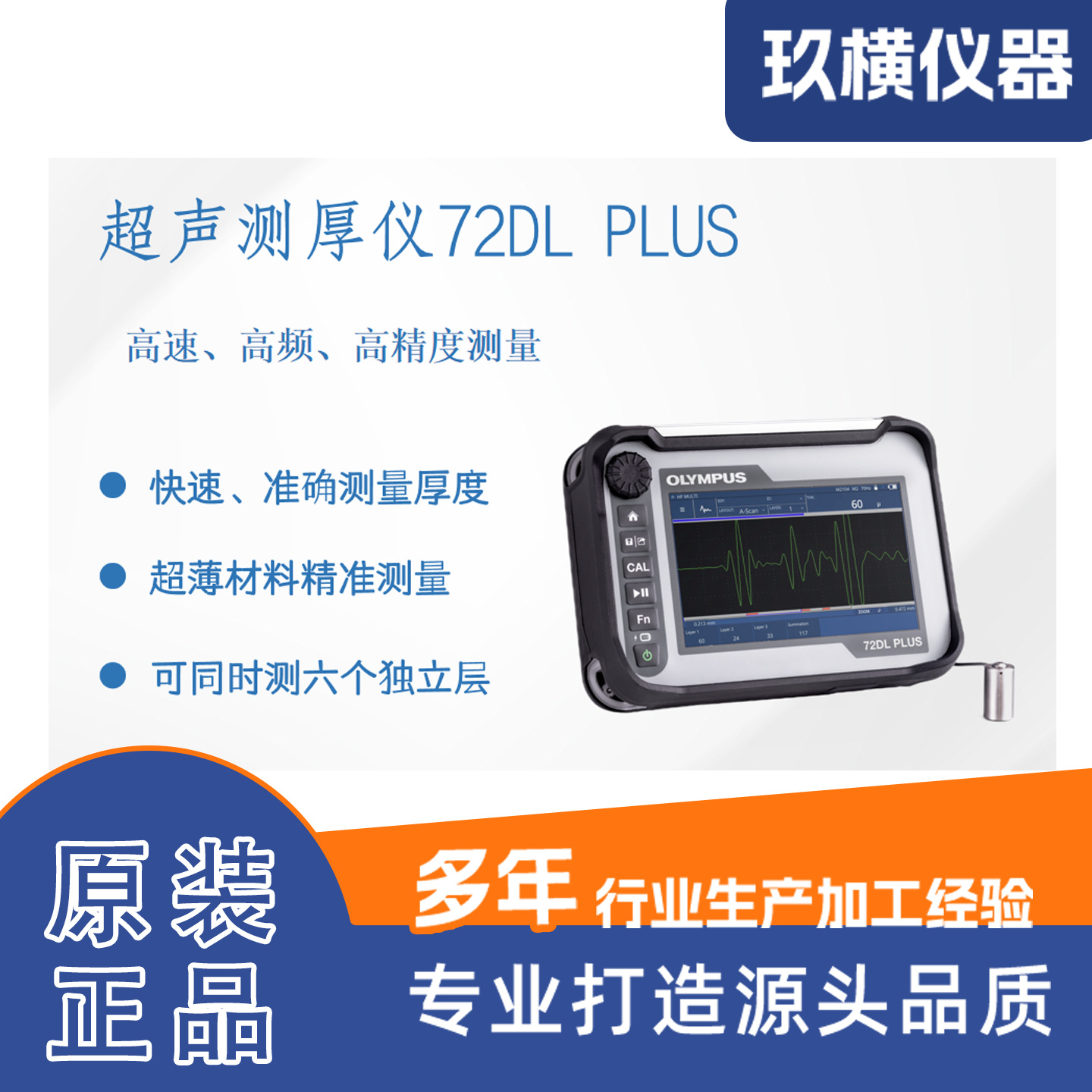 Ультразвуковой толщиномер Olympus 72DL, многоплойное измерение толщины, высокочастотный зонд для обнаружения тонких материалов 0,05 мм