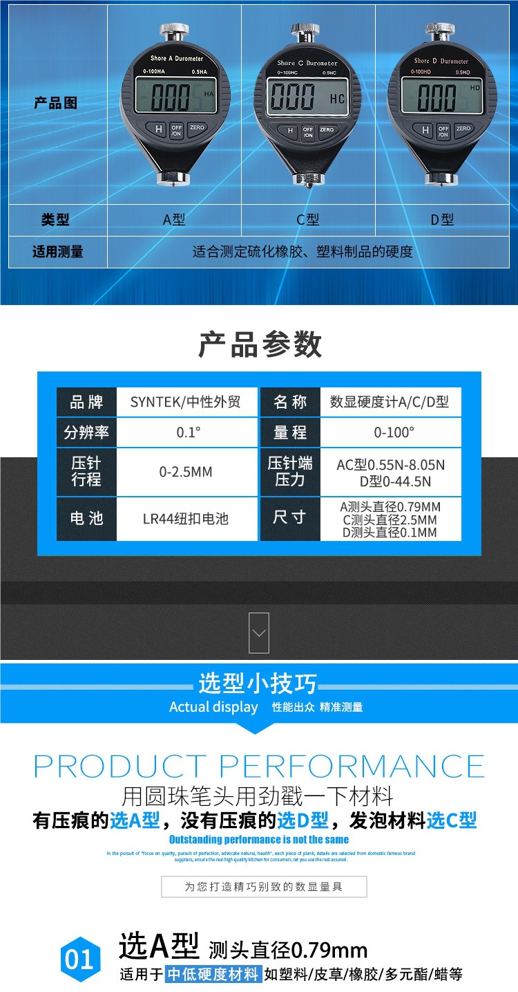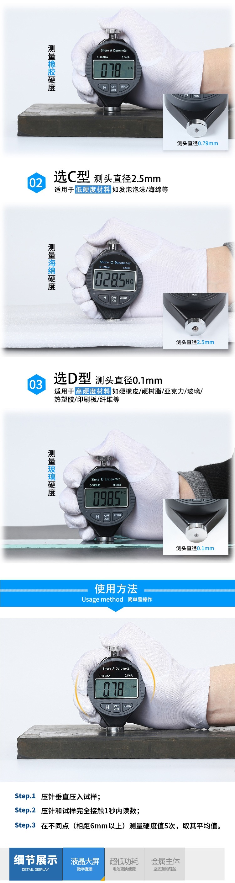 数显邵氏硬度计硬度仪A/C/D型硬度表 化工橡胶海绵硅胶硬度测试仪
