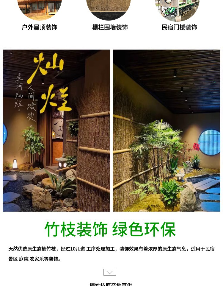 Бамбуковые ветви украшают крышу, двор, забор, B&B, тонкий бамбуковый шелковый забор, забор, бамбуковый дом, бамбуковый павильон, уличный