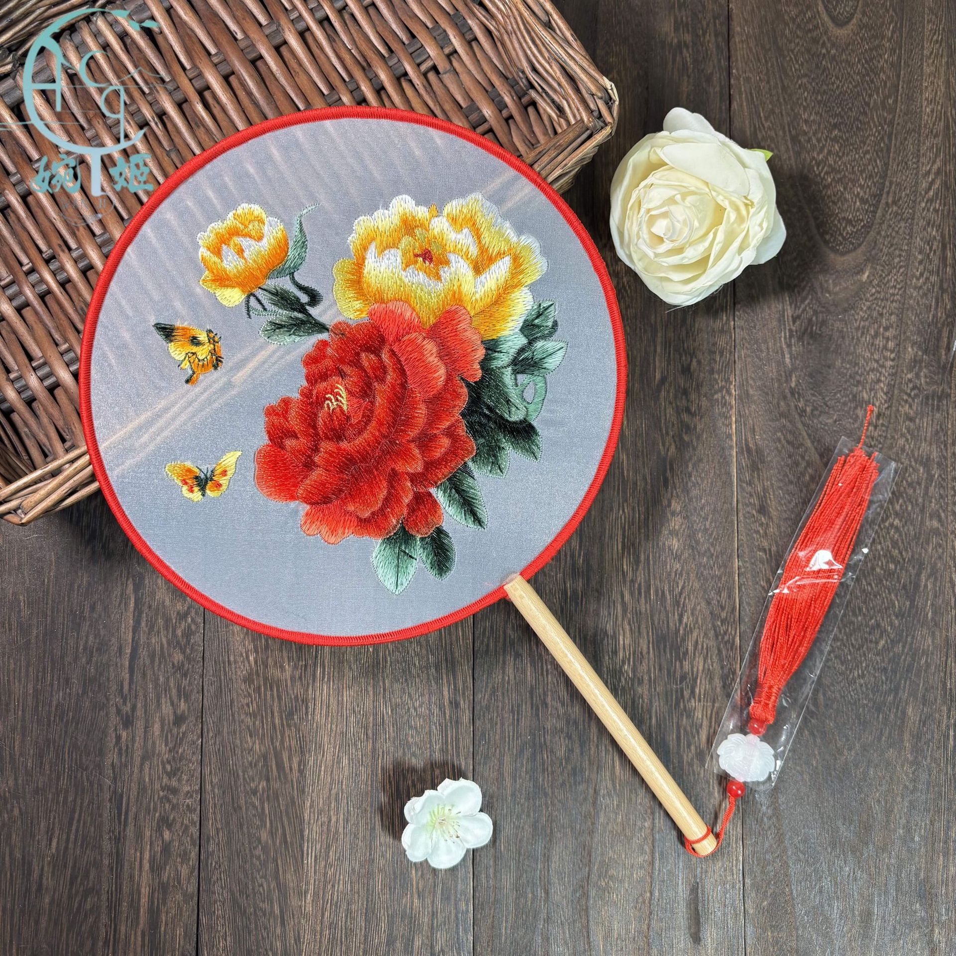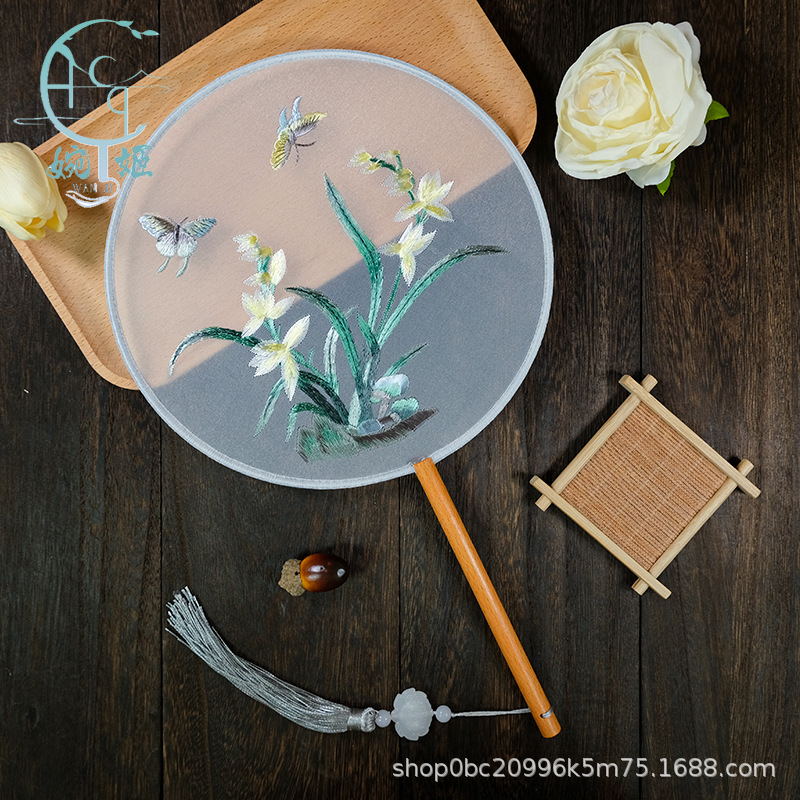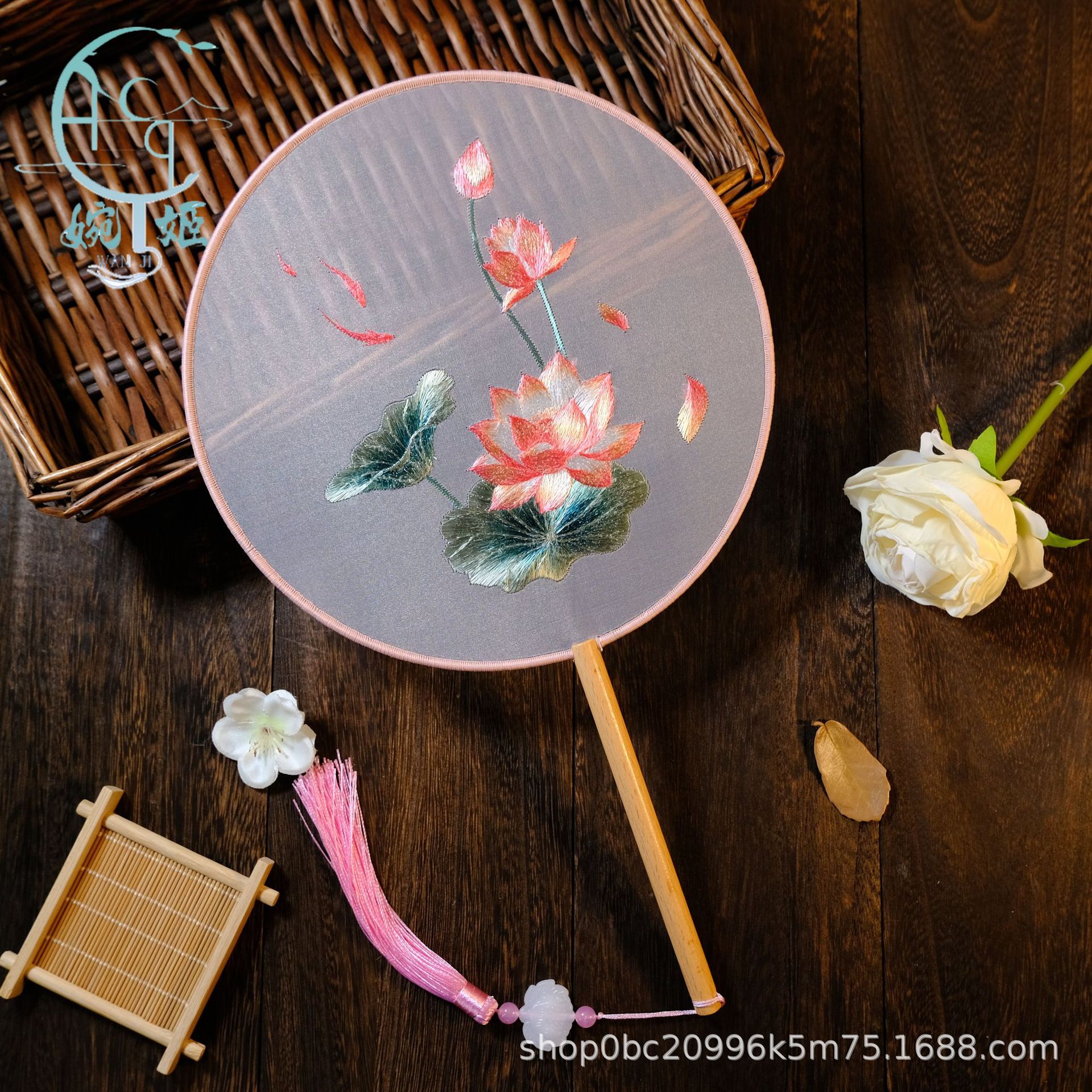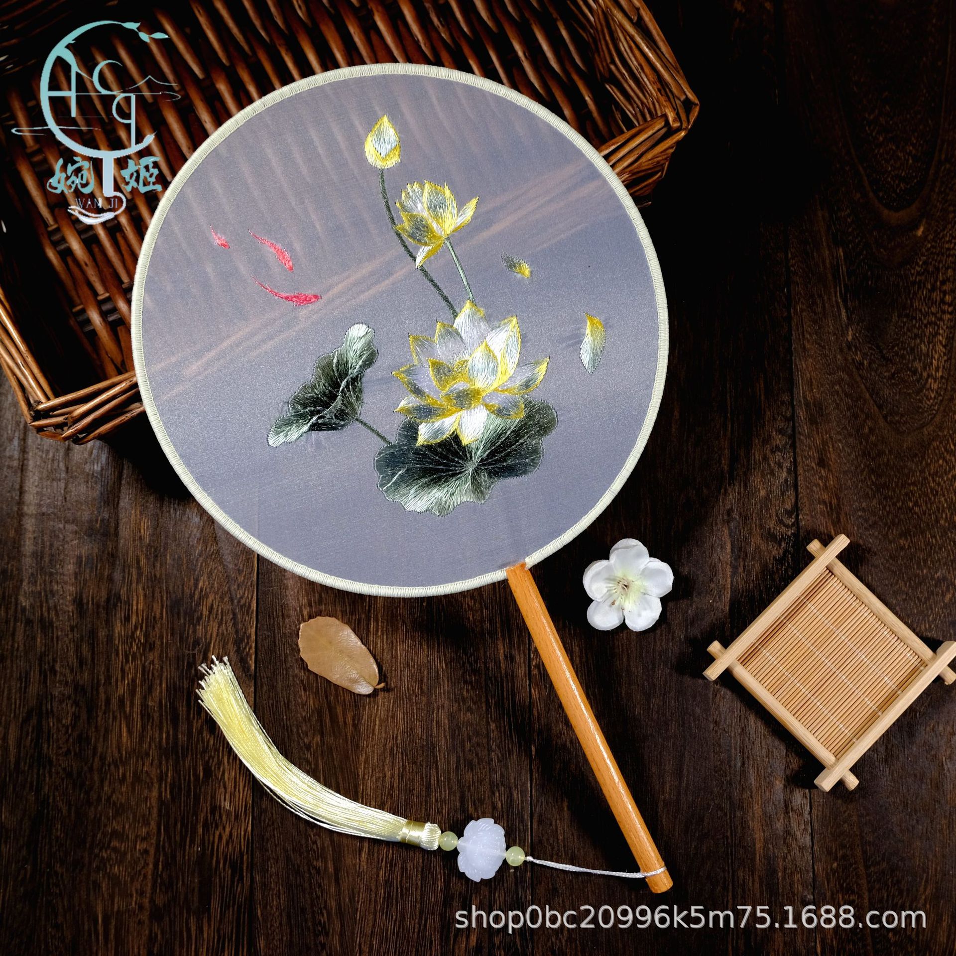 Универсальные подарки, другая танцевальная фабрика, круглый веер с вышивкой Сучжоу, двусторонняя вышивка, круглый веер Hanfu, вышивка, оптовая продажа, веер в древнем стиле