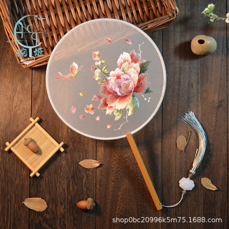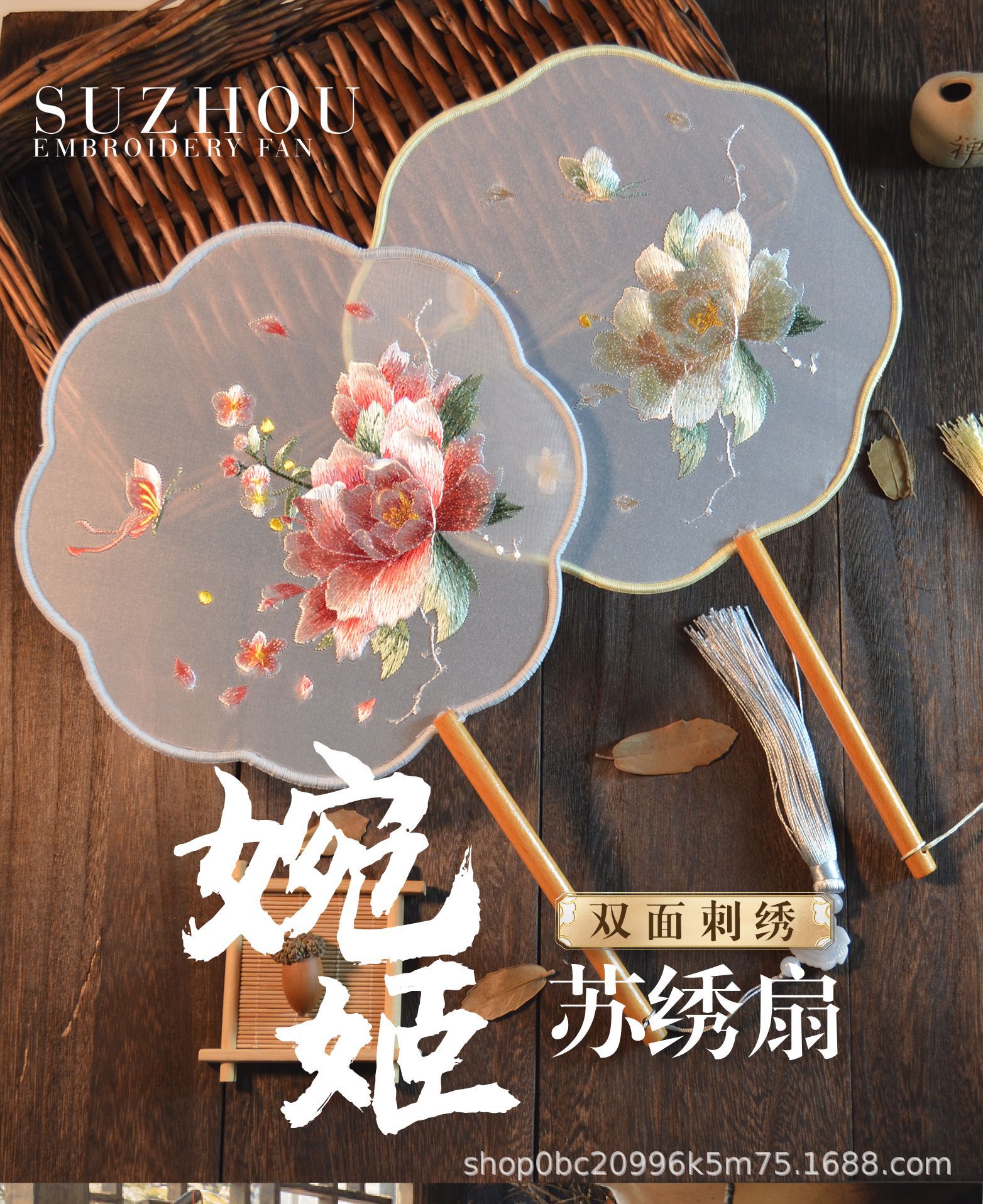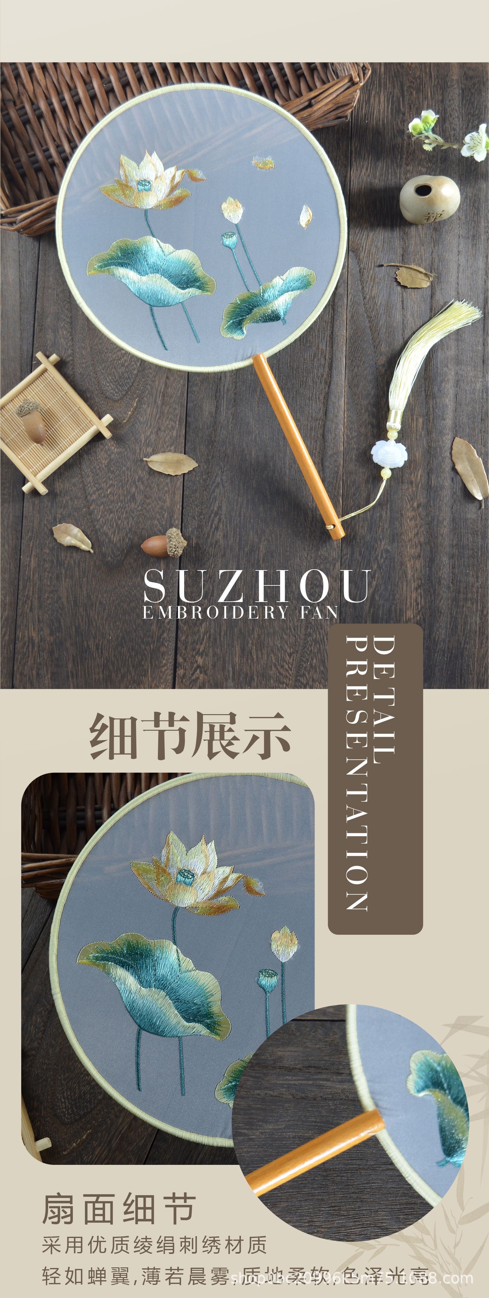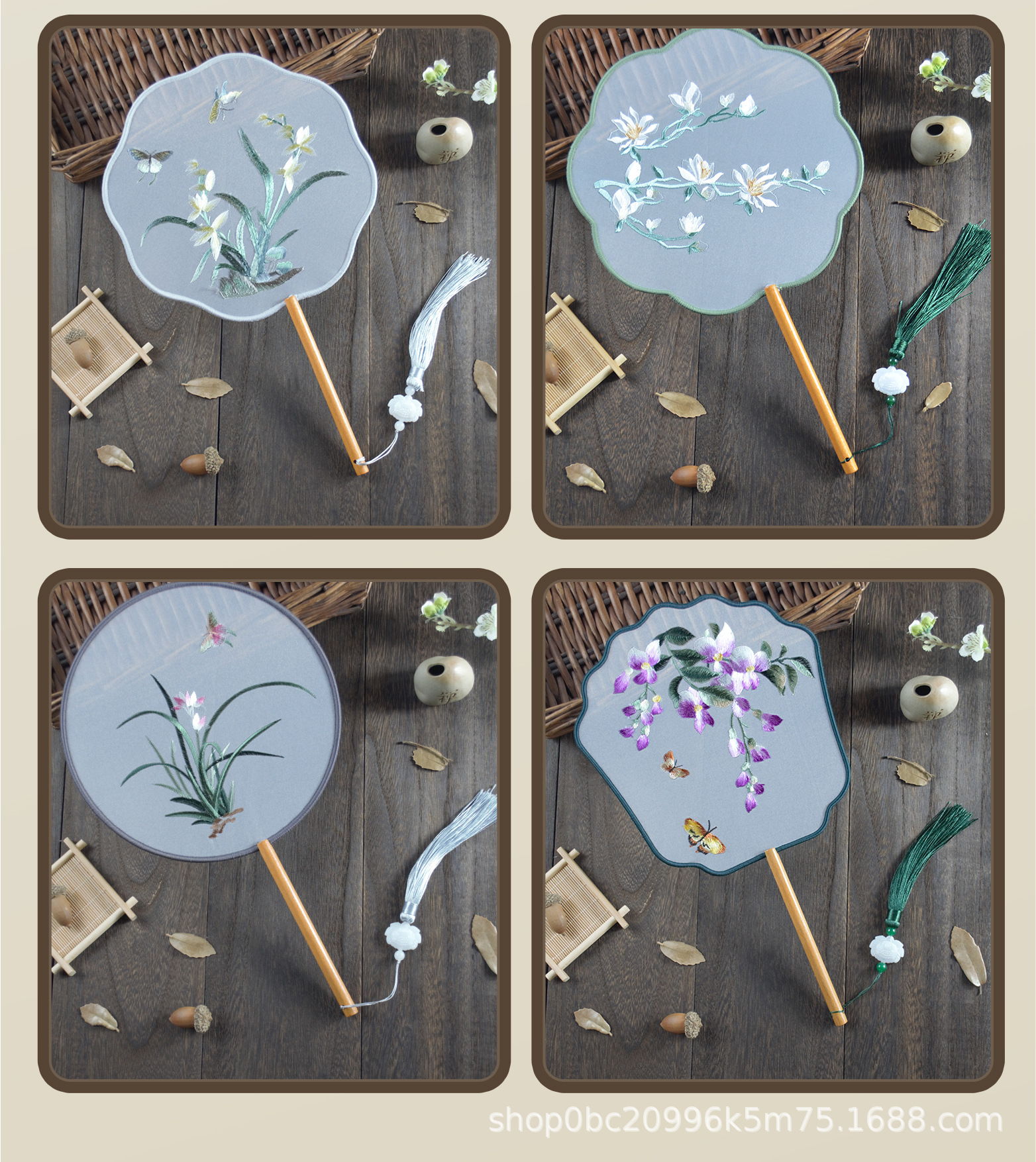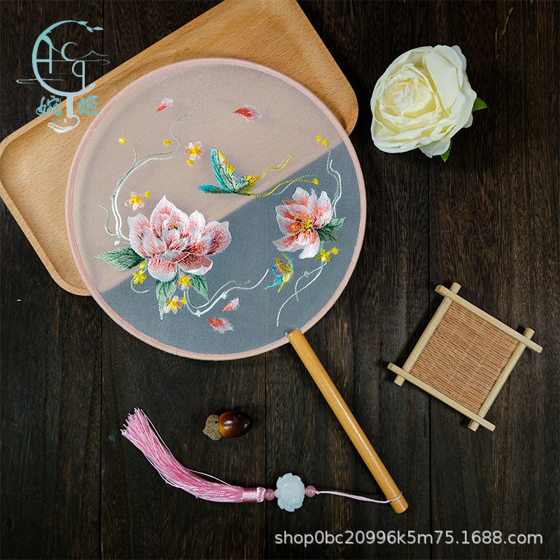 Универсальные подарки, другая танцевальная фабрика, круглый веер с вышивкой Сучжоу, двусторонняя вышивка, круглый веер Hanfu, вышивка, оптовая продажа, веер в древнем стиле
