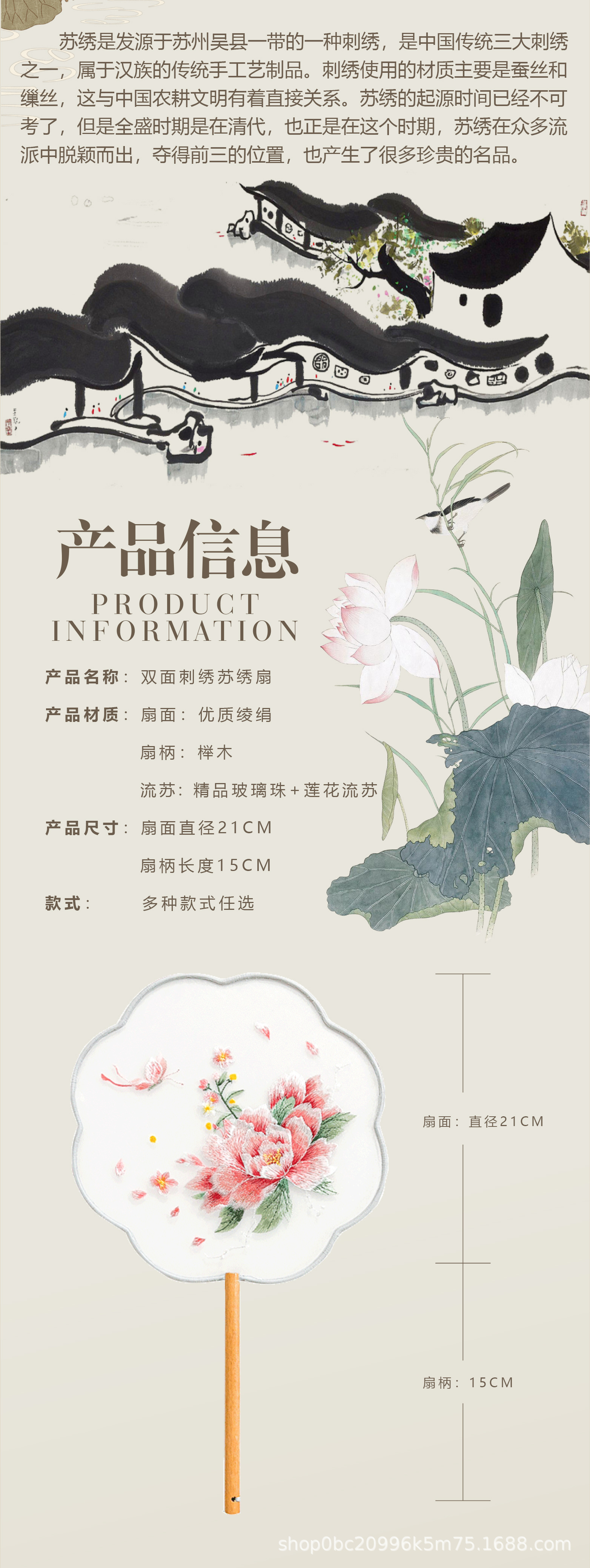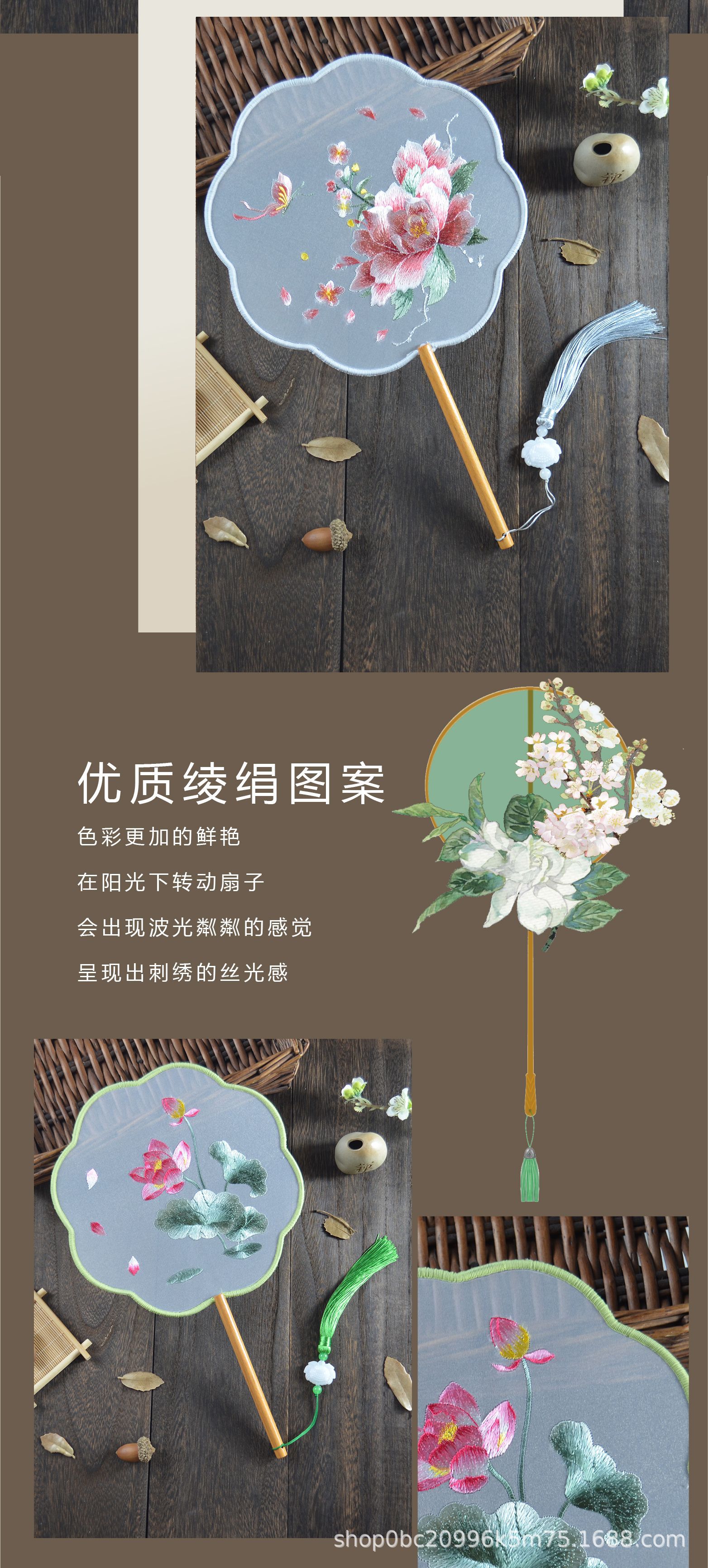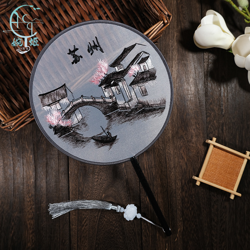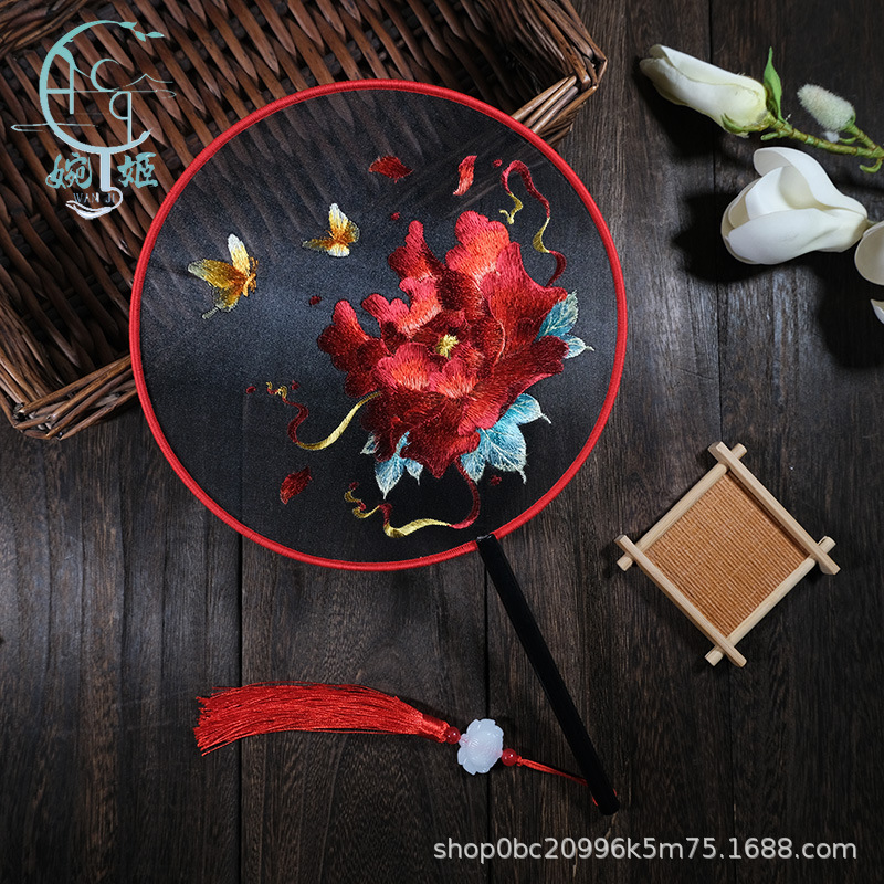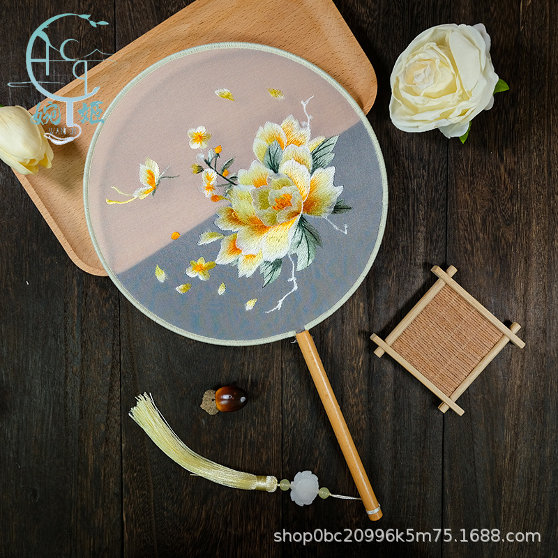 Универсальные подарки, другая танцевальная фабрика, круглый веер с вышивкой Сучжоу, двусторонняя вышивка, круглый веер Hanfu, вышивка, оптовая продажа, веер в древнем стиле