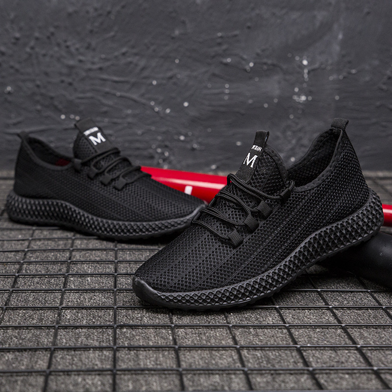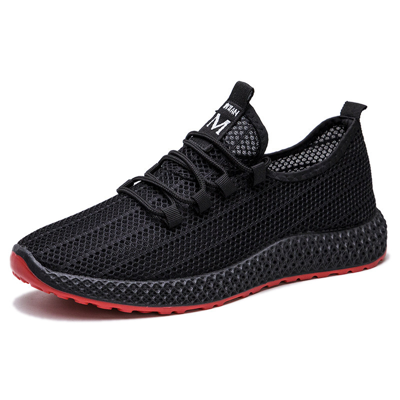 Летняя модная мужская обувь в корейском стиле, дышащая мужская спортивная обувь с полой сеткой, нескользящая черная обувь на мягкой подошве, мужская трансграничная обувь