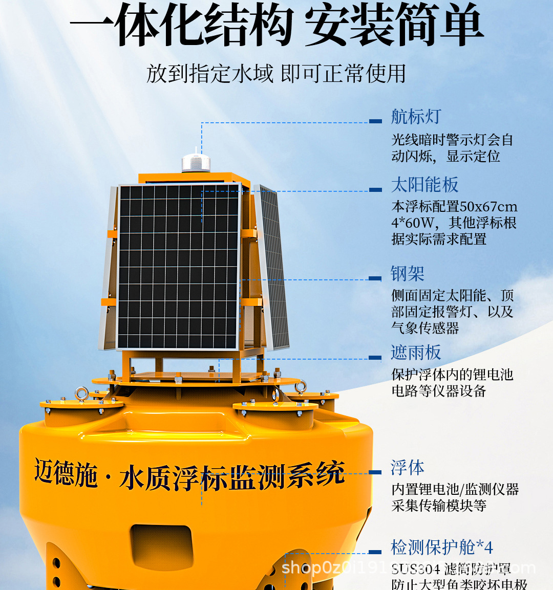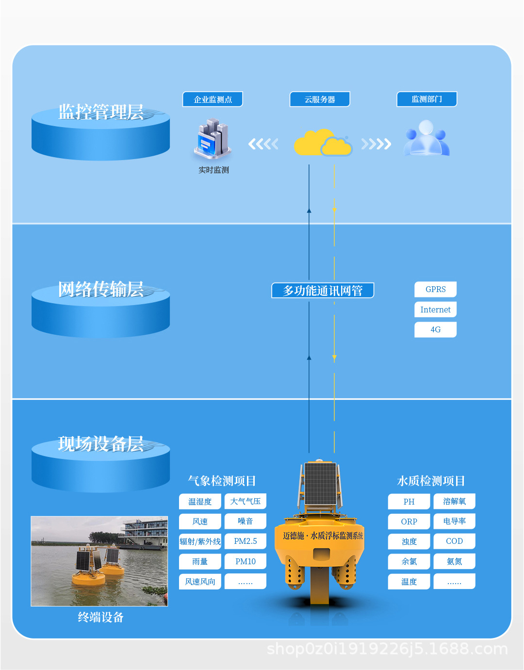 Буй, метеостанция, качество воды, онлайн-мониторинг трески, система передачи растворенного кислорода, pH, остаточный хлор, многопараметрический детектор
