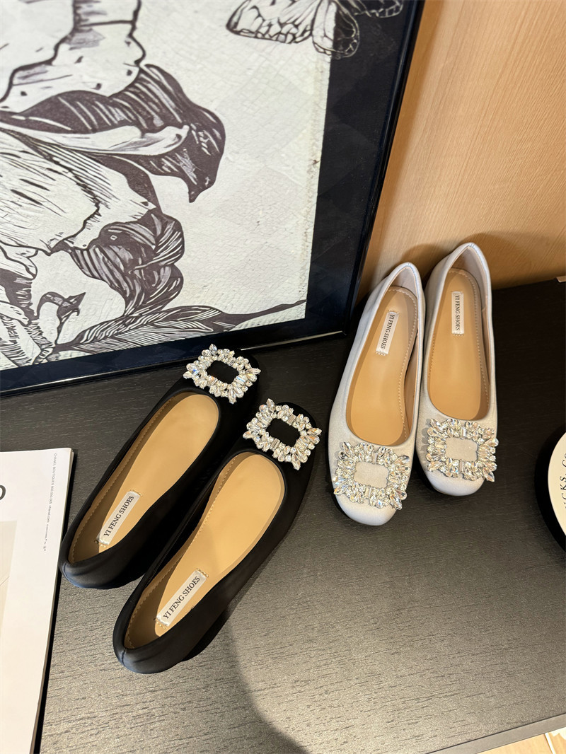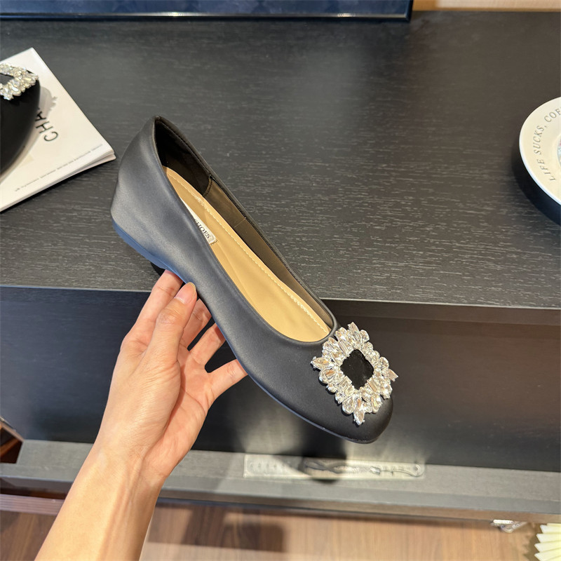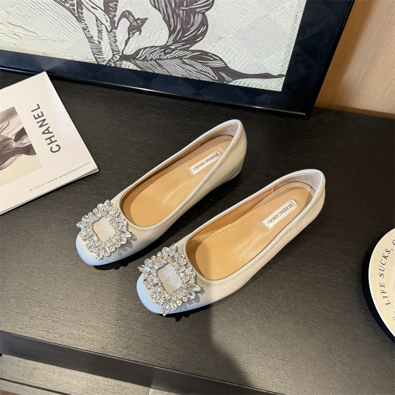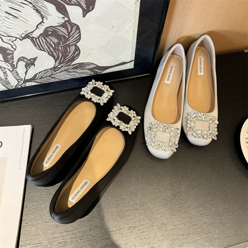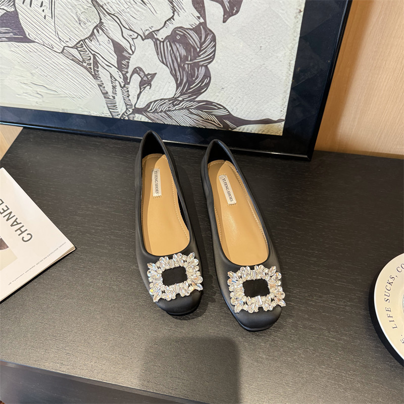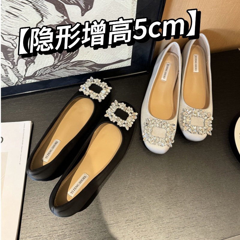 Миниатюрные туфли из овчины, увеличивающие рост, с квадратной пряжкой со стразами, женские туфли-лодочки, вечерние нежные туфли на плоской подошве с круглым носком.
