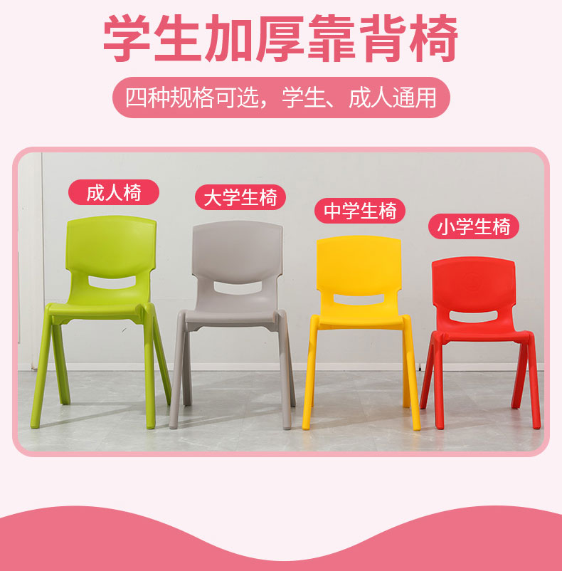 ♤ Пластиковый стул со спинкой для взрослых, учащихся начальной и средней школы, учебные столы и стулья, для домашнего использования, увеличенные детские разноцветные пластиковые табуреты.