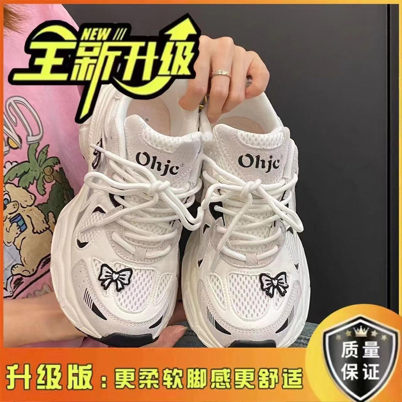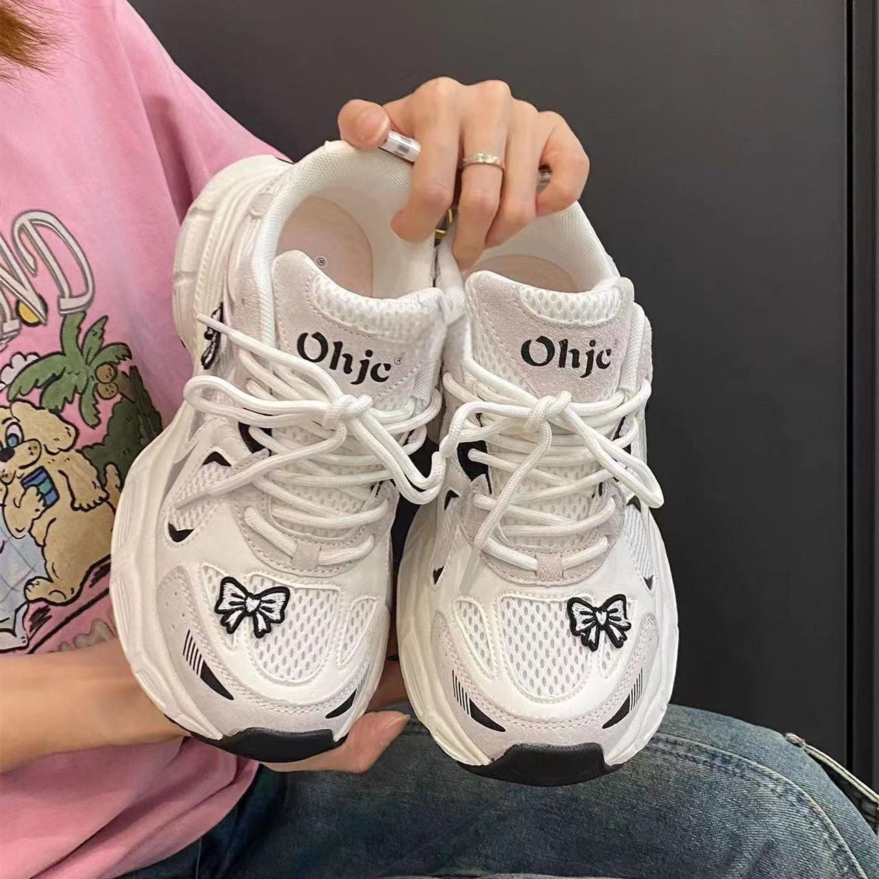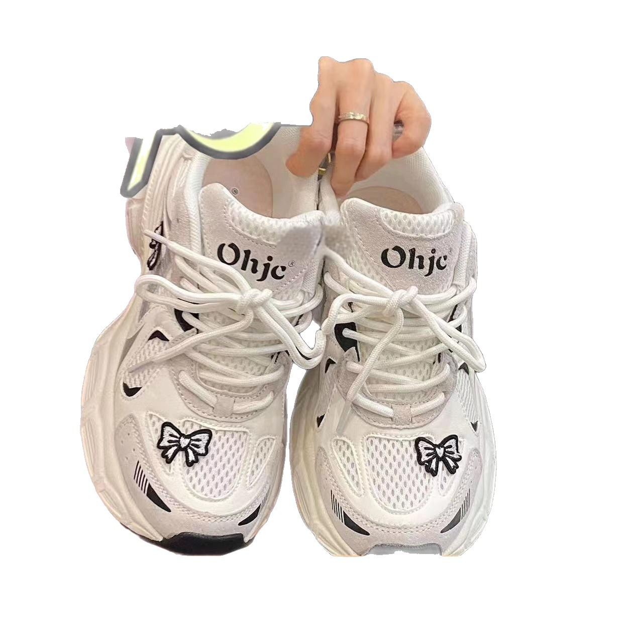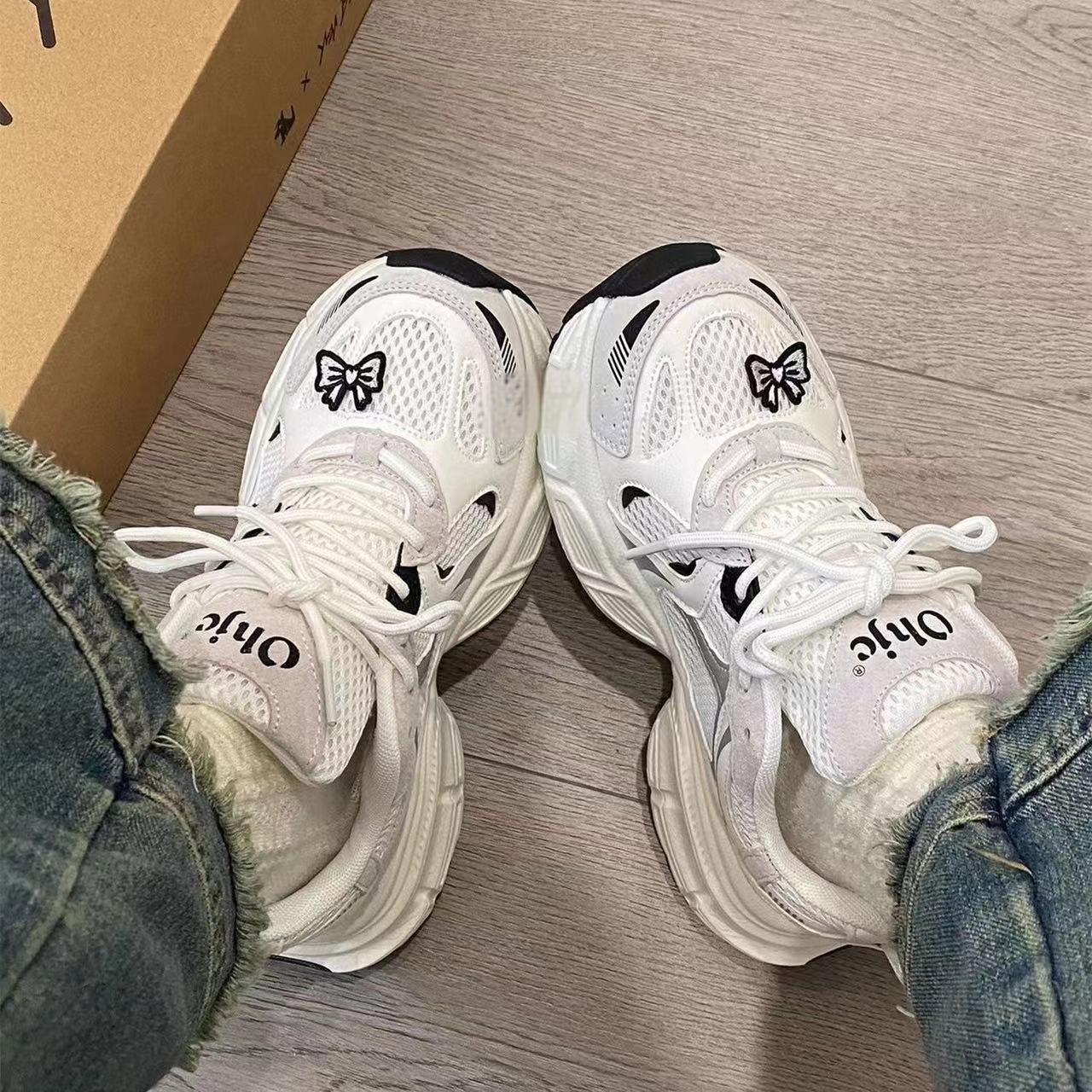 Туфли для папы на толстой подошве, женская обувь, весна-лето 2025, новая спортивная обувь, повседневная белая обувь с сеткой на четыре сезона, спортивная обувь