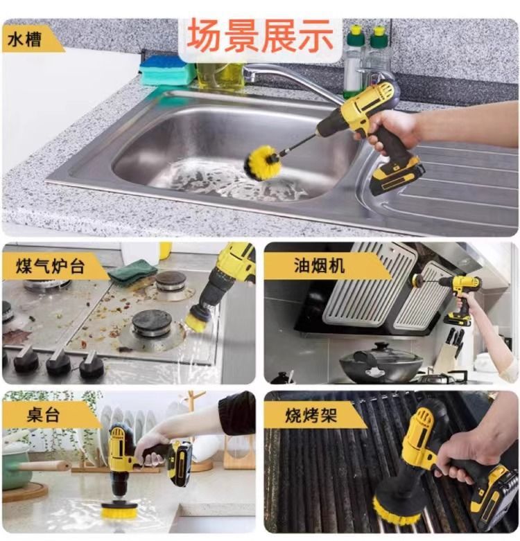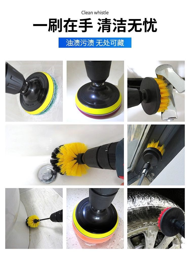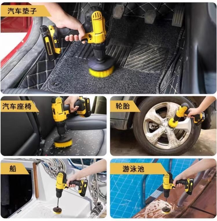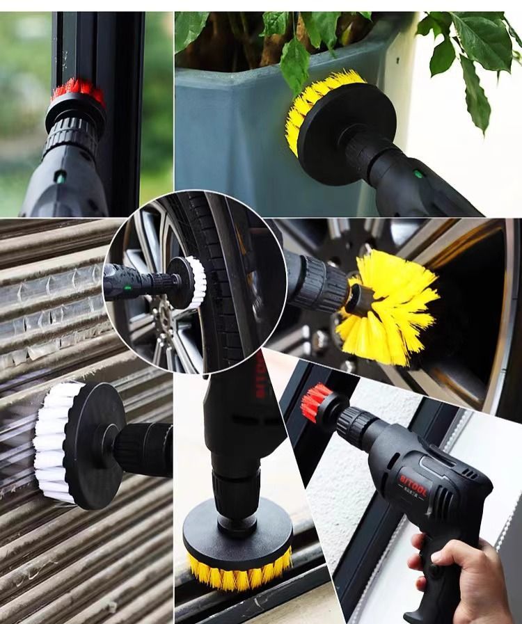 Популярный набор электрических щеток для дрелей, многофункциональная насадка для чистки, щетка для шин и колесных дисков, щетка для труднодоступных мест, набор для чистки автомобилей.