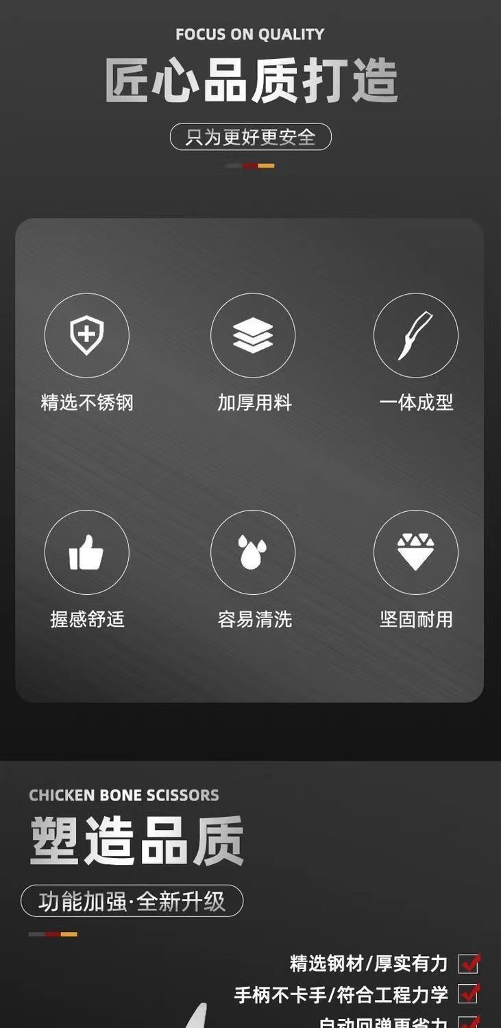 [Немецкий Seiko] Гостиничные ножницы из нержавеющей стали, ножницы для куриных костей, скребок для рыбной чешуи, бытовая кухонная техника с отскоком