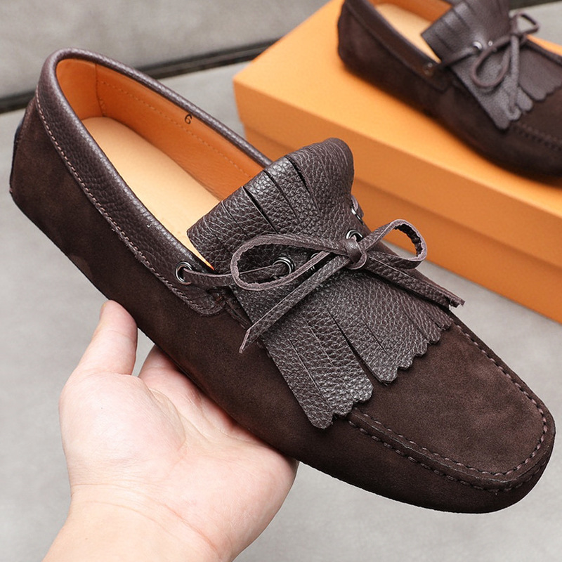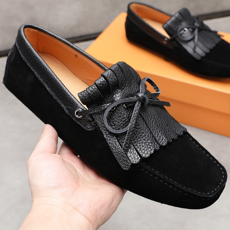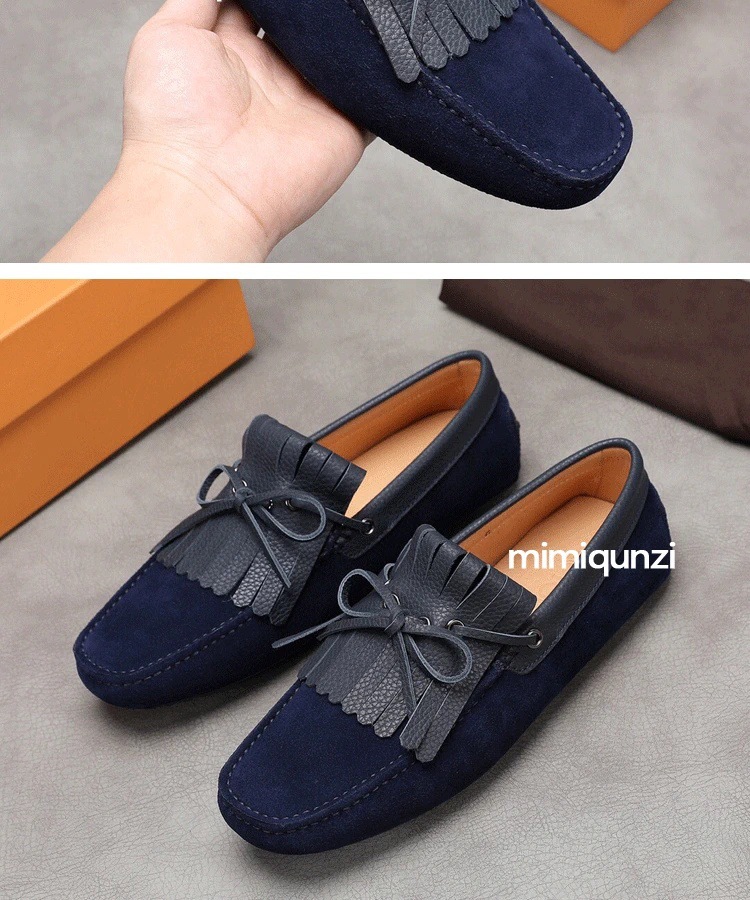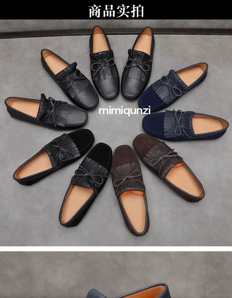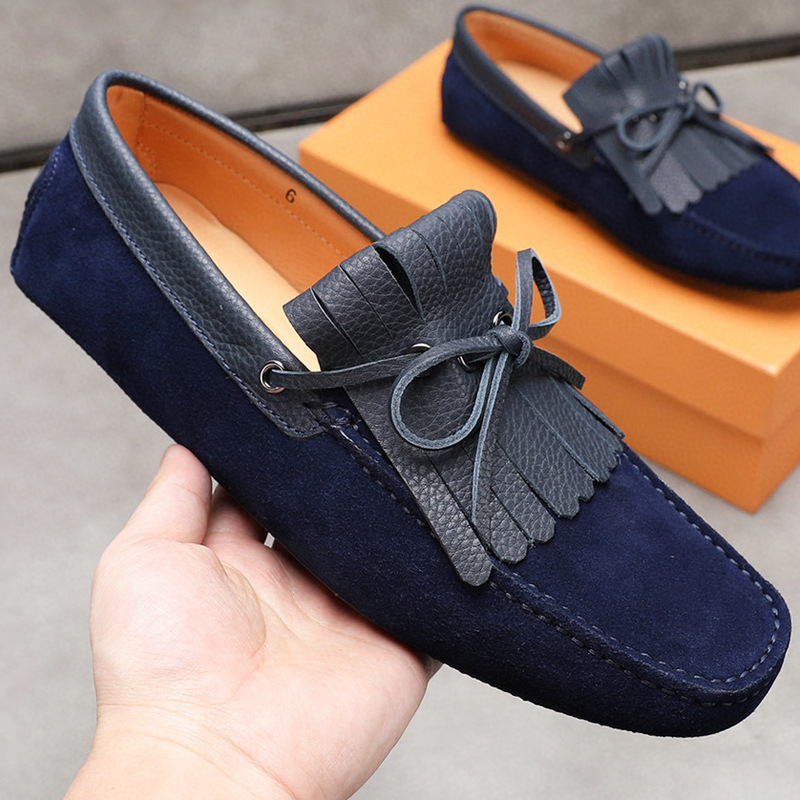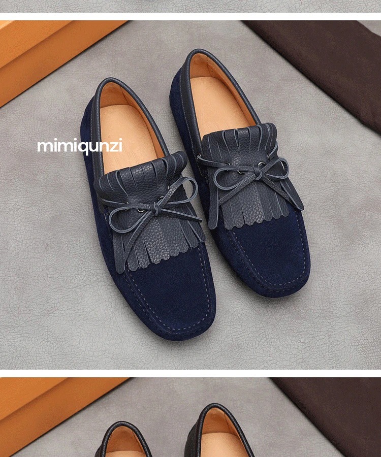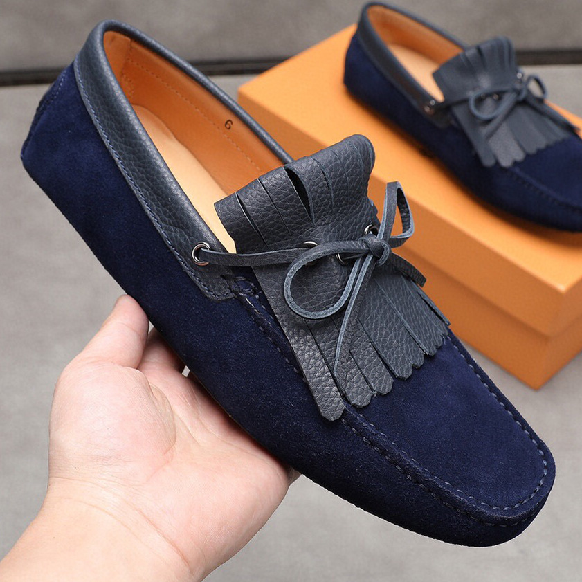 Европейские мужские повседневные кожаные туфли из синей нубука, туфли без шнуровки, туфли с кисточками, туфли на плоской подошве из натуральной кожи, туфли-бини