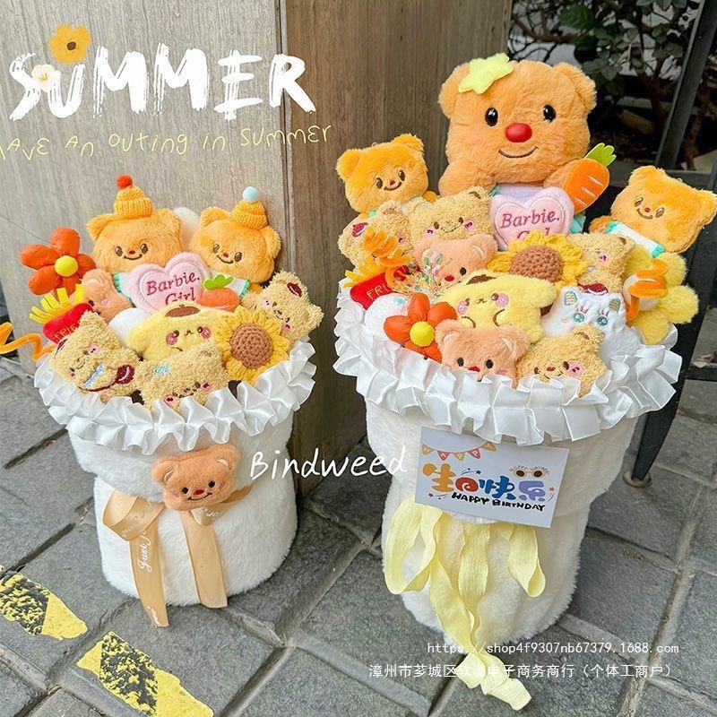 Готовый букет мультяшных кукол Butter Bear, милый девчачий подарок на день рождения для подруг и парней.