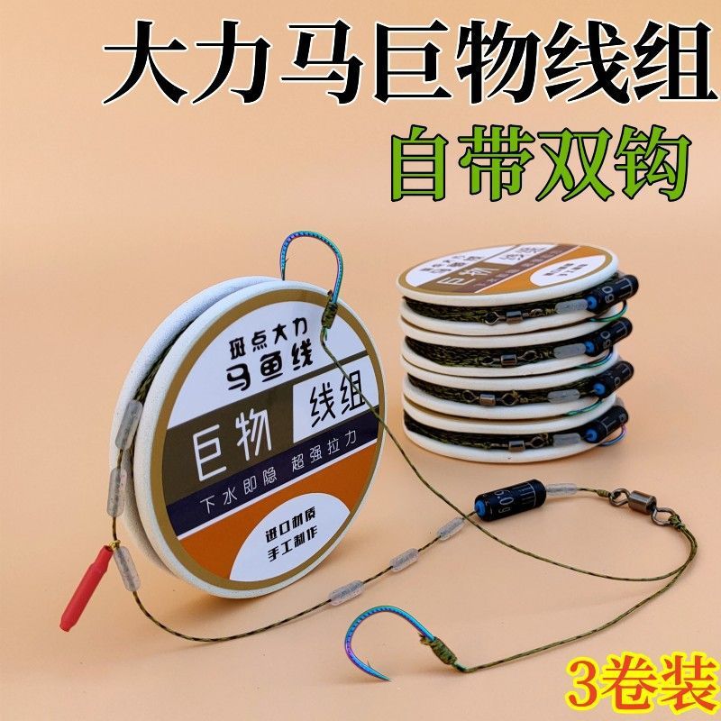 Полный набор лески Dyneema с предварительно завязанными крючками для дикой рыбалки, подходящий для ловли крупной рыбы, такой как черный карп, травяной карп и карп-головастик.