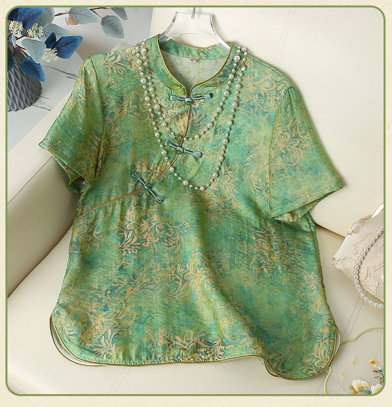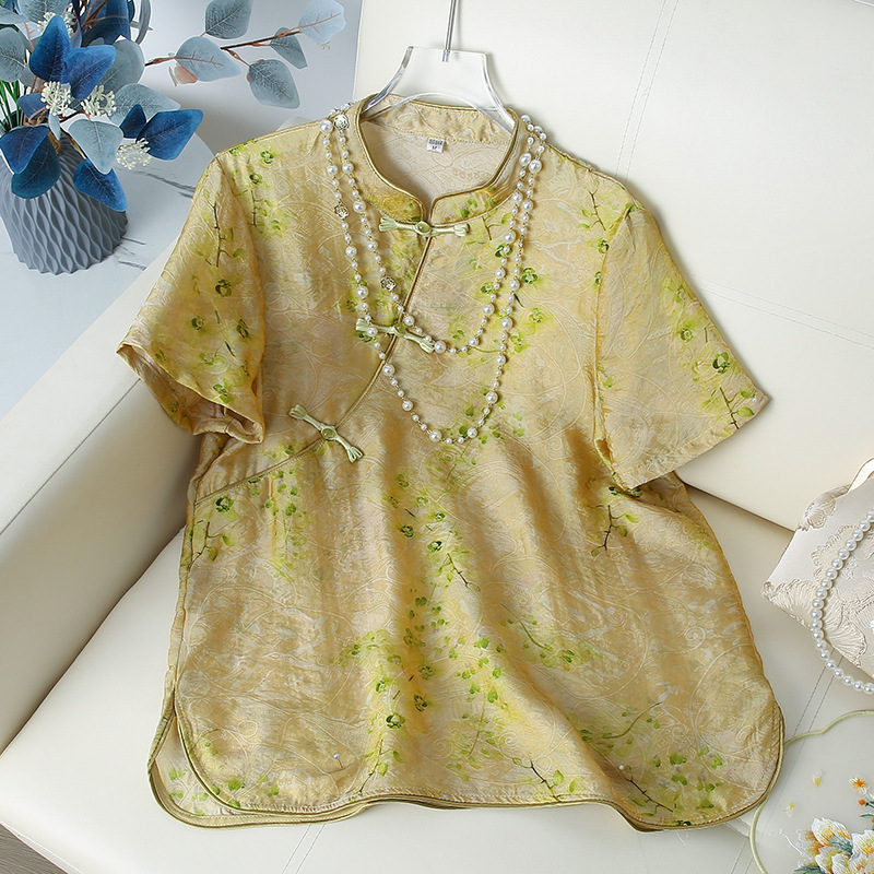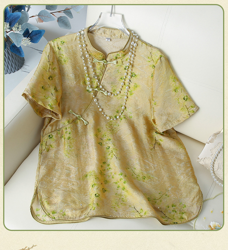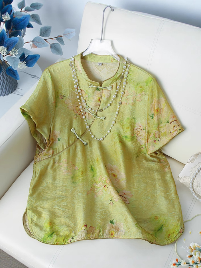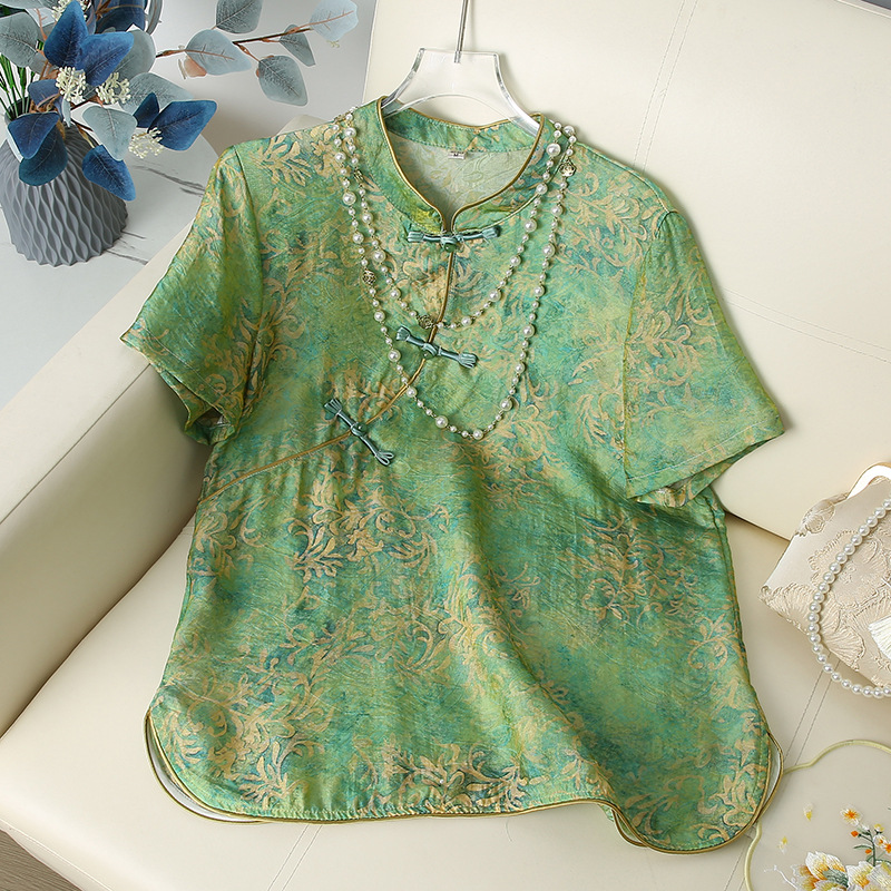 Новая летняя одежда в китайском стиле, новая ретро рубашка из рами с воротником-стойкой на пуговицах, свободный дышащий топ с короткими рукавами и принтом для женщин, оптовая продажа