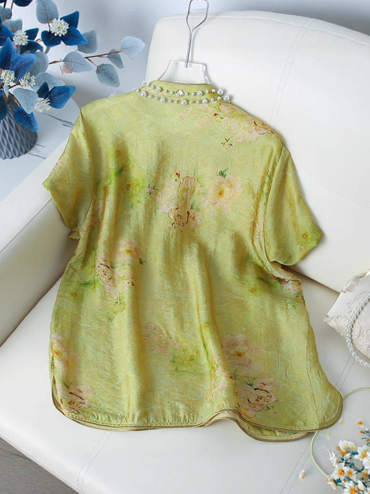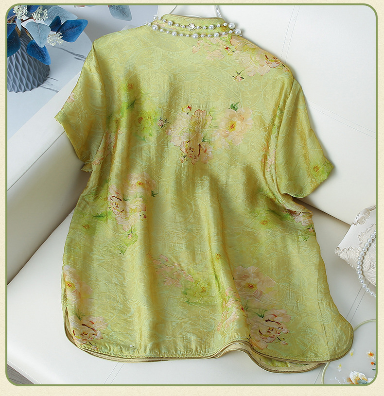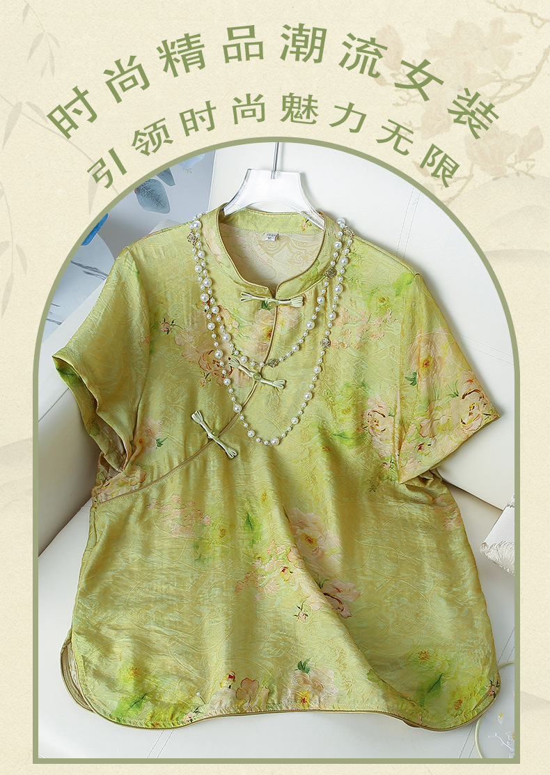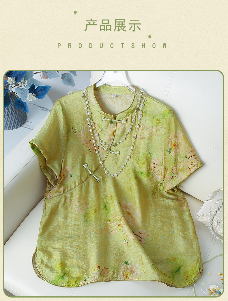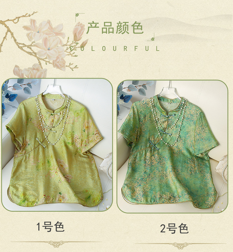 Новая летняя одежда в китайском стиле, новая ретро рубашка из рами с воротником-стойкой на пуговицах, свободный дышащий топ с короткими рукавами и принтом для женщин, оптовая продажа
