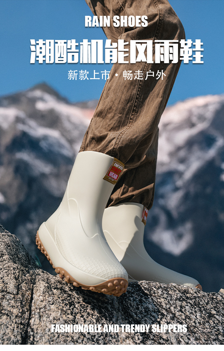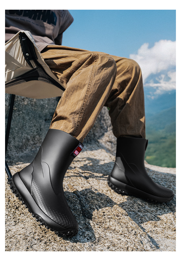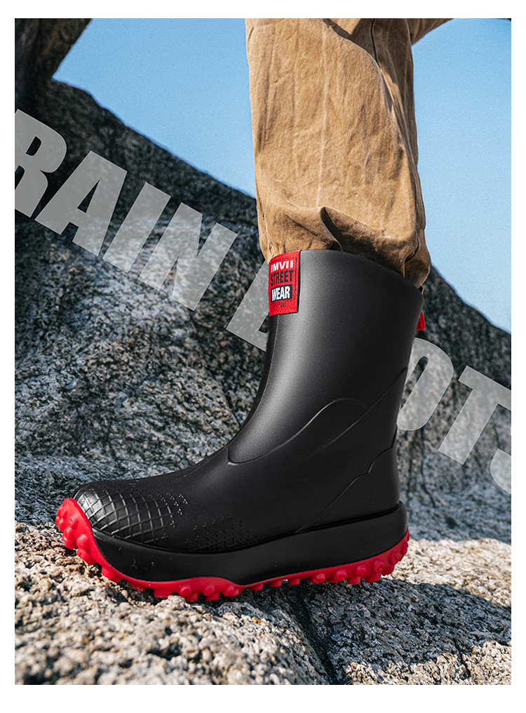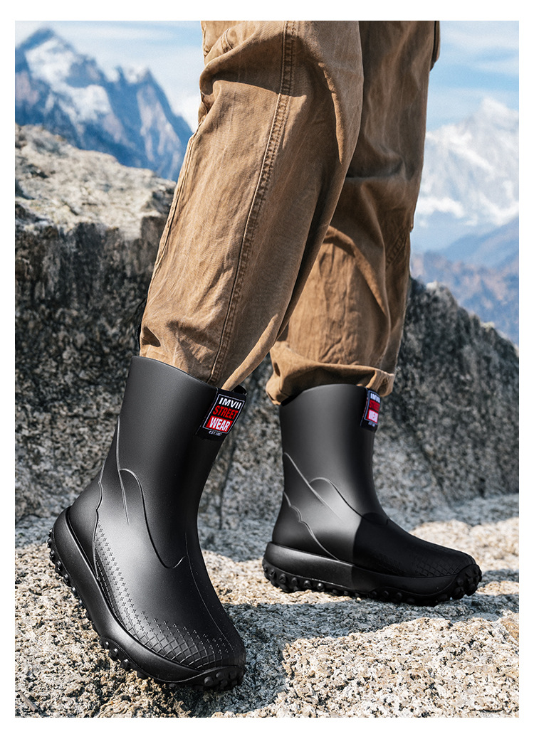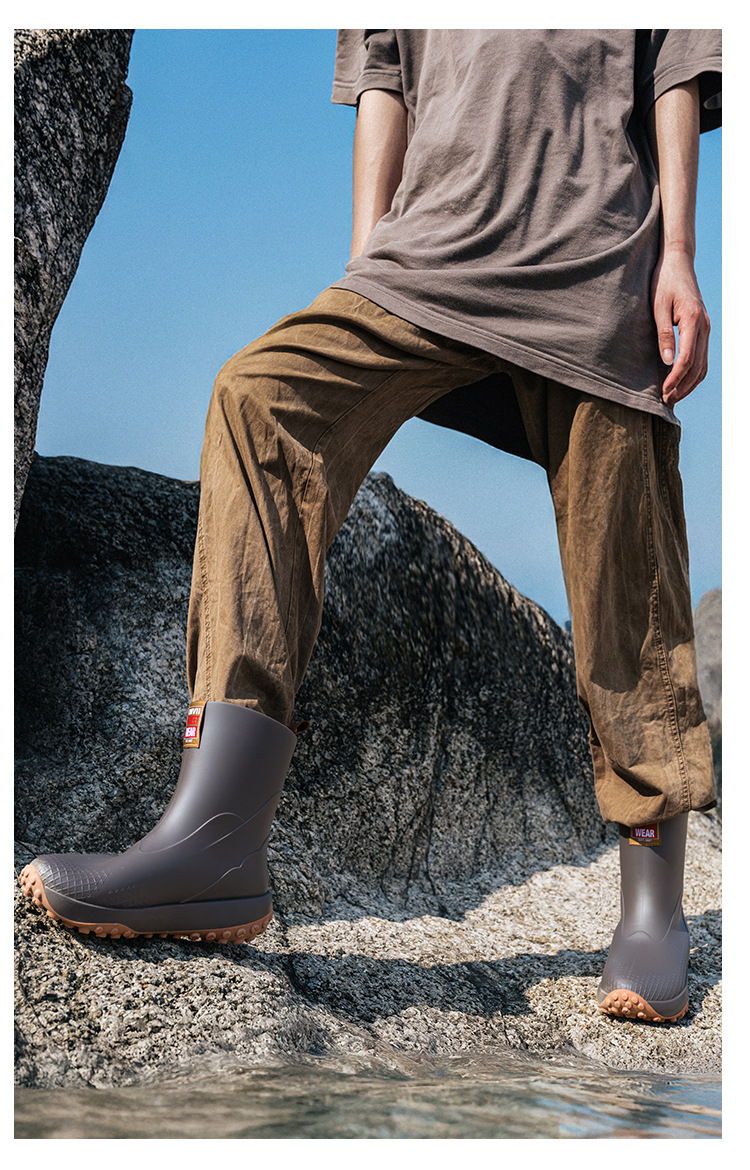 модные мужские резиновые сапоги до середины икры, водонепроницаемая обувь для студентов, велосипедные резиновые сапоги, нескользящие, утолщенные, износостойкие водные сапоги с короткими голенищами для уличной одежды